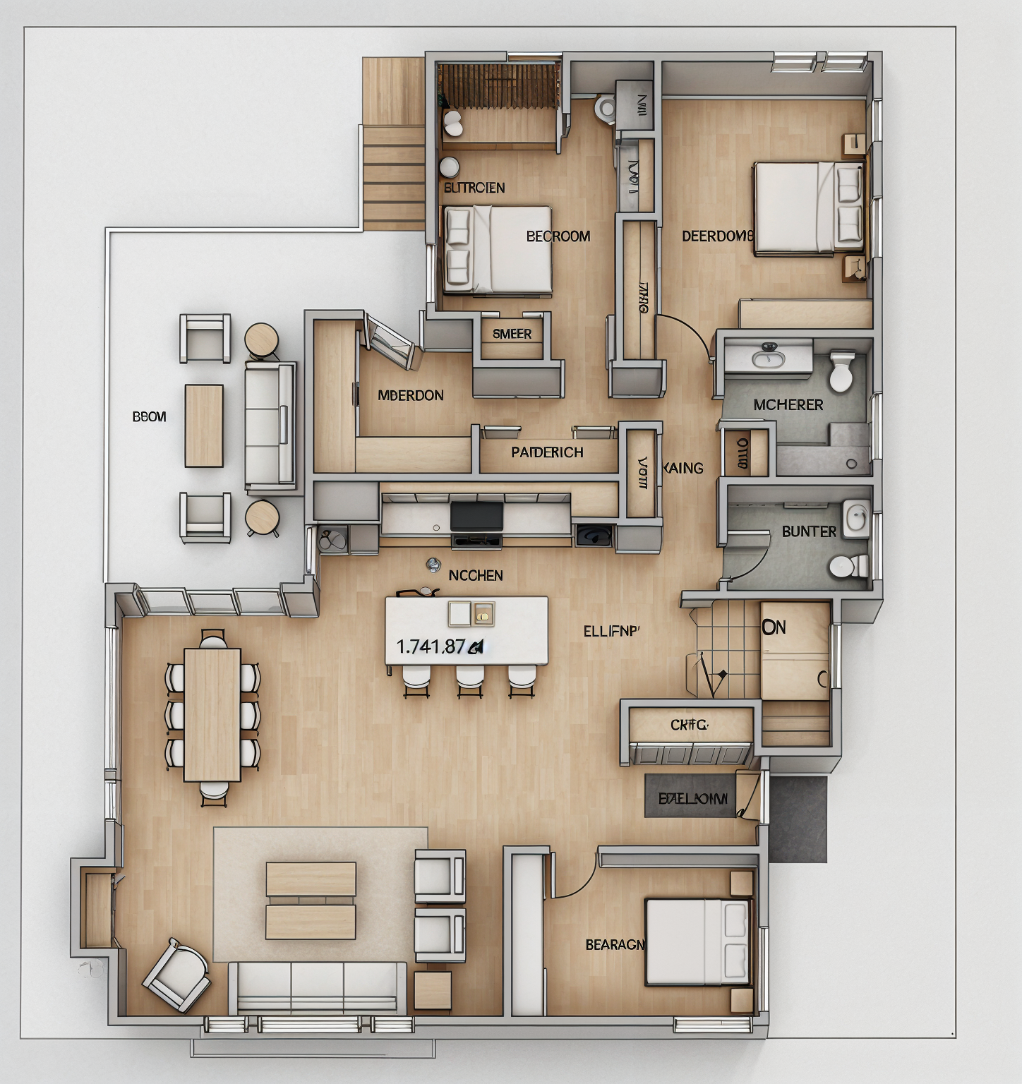exterior shot interior shot preserve camera composition and all geometry exactly do not change layout scale proportions or positions strict material transfer from references armchair wassily keep exact geometry replace materials exactly based on reference natural black and white cowhide upholstery visible short fur with slightly longer soft hair subtle hair direction variation and irregular density not flat not smooth leather realistic tactile fur surface with depth highly polished chrome tubular frame with sharp reflections black leather armrest straps do not simplify or stylize dining chairs thonet s64 jil sander keep geometry apply deep burgundy leather exactly as in reference smooth slightly glossy leather rich dark red tone soft highlights subtle reflections high quality chrome tubular steel with realistic reflections dining table keep geometry apply material exactly as in reference natural wood tabletop with visible grain warm brown tone subtle variation matte finish brushed or satin metal legs important materials must match references precisely no reinterpretation cowhide strictly black and white increase material realism fine texture detail micro imperfections realistic reflections lighting soft natural daylight with slightly stronger contrast no redesign