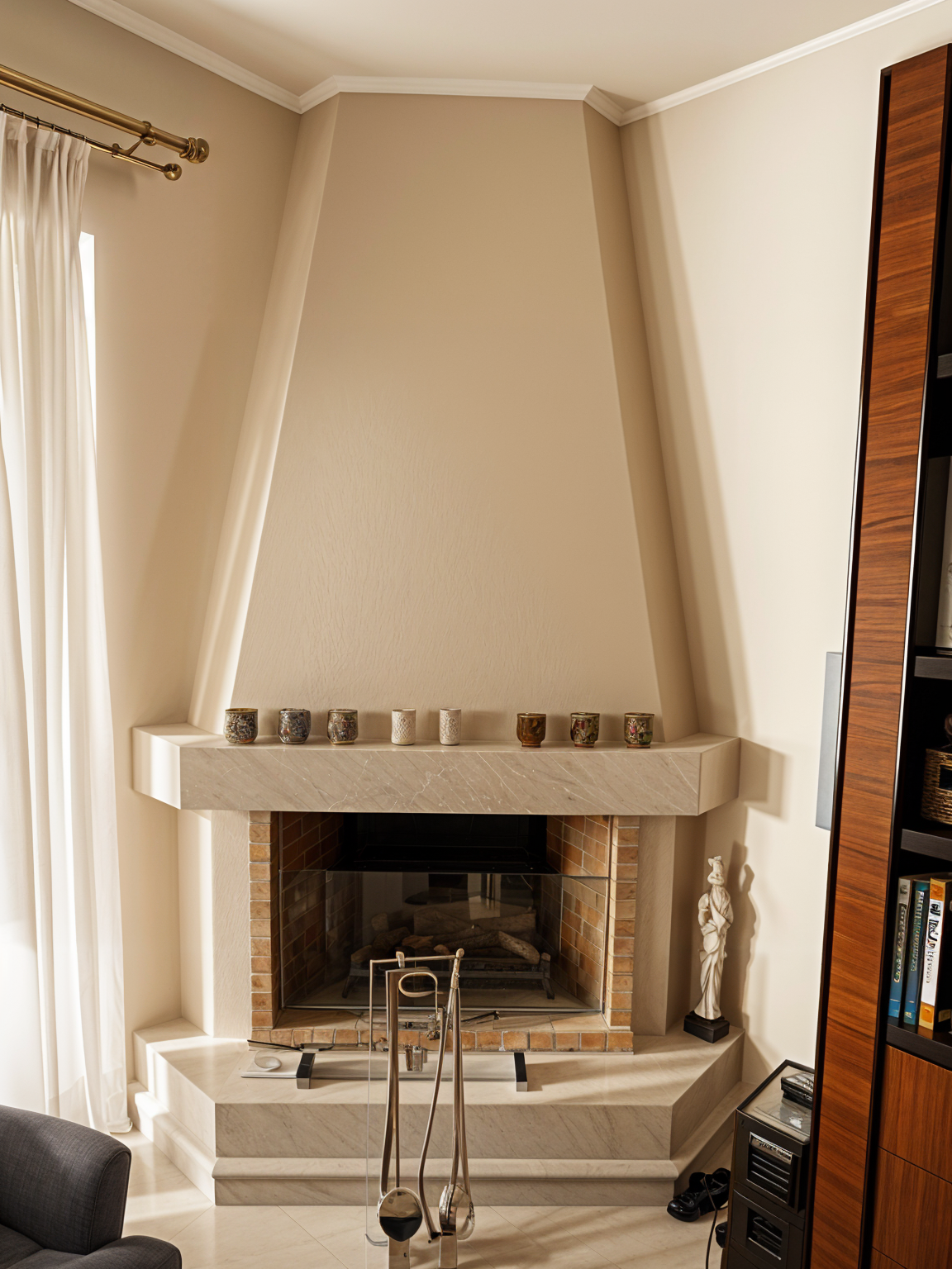 change the brown wall around the outside of the alcove into a cream color the space shown in the reference image it is inside a brightly lit indoor shopping so please add very realistic but slightly out of focus shoppers and customers walking past in the foreground with christmas shopping bags