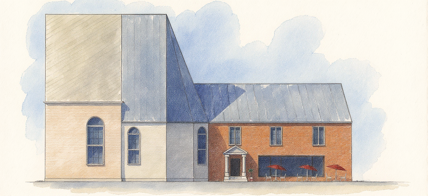 turn this elevation into an architectural sketch keep the exact same colors and texture make sure we see the textures really well no perspective add shadows
