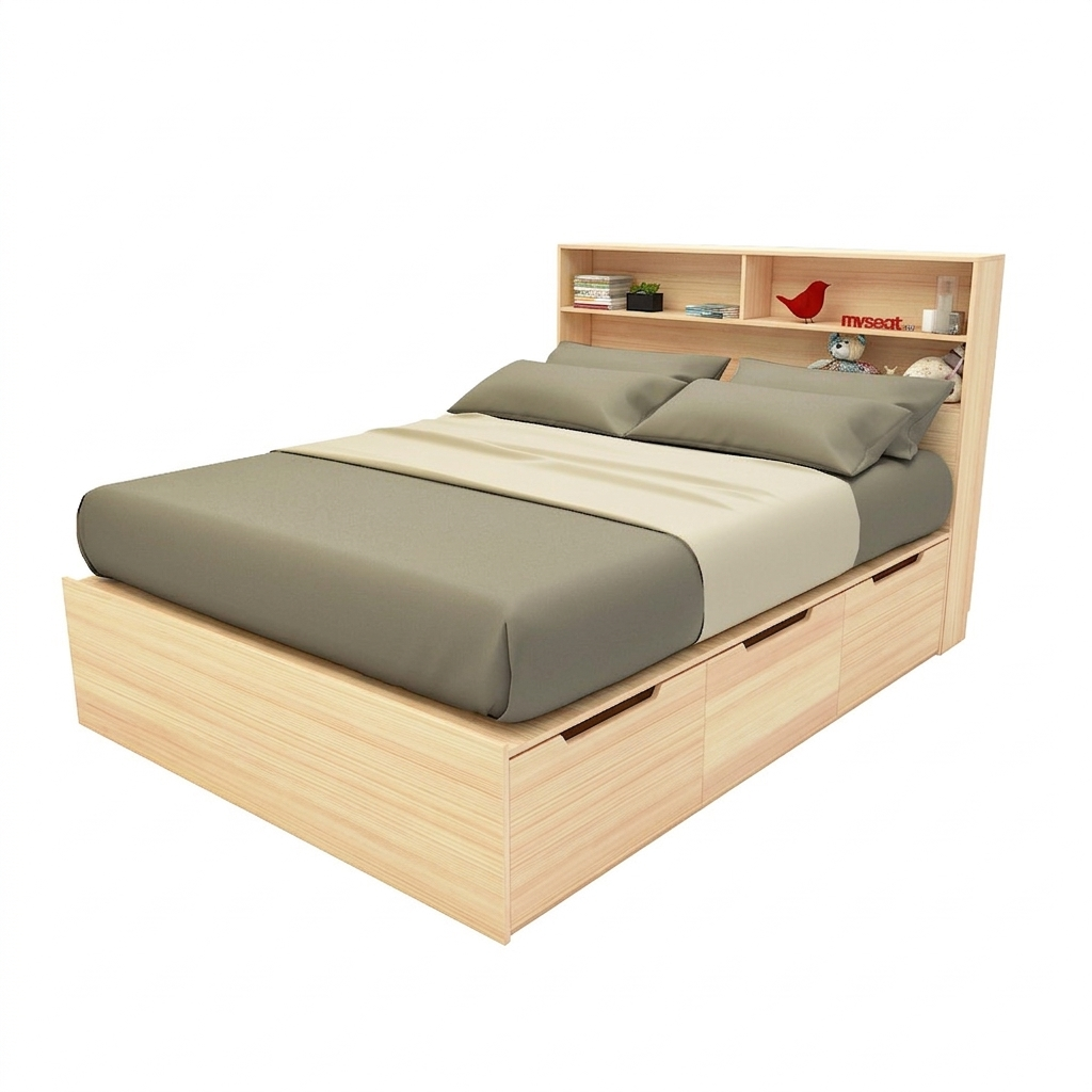 modernist exterior shot replace the current mattress sheet with a more premium and aesthetically pleasing bedding set use soft neutral tones such as light taupe with subtle layered textures e g a quilted blanket linen sheets and plush pillows add depth by layering 2 3 decorative cushions in complementary tones e g muted olive sand or warm grey while keeping a minimalist and cozy look enhance the headboard shelf styling by replacing the current decorations with a more curated modern setup include a combination of a small potted plant e g eucalyptus and 2 3 stacked neutral tone books architecture
