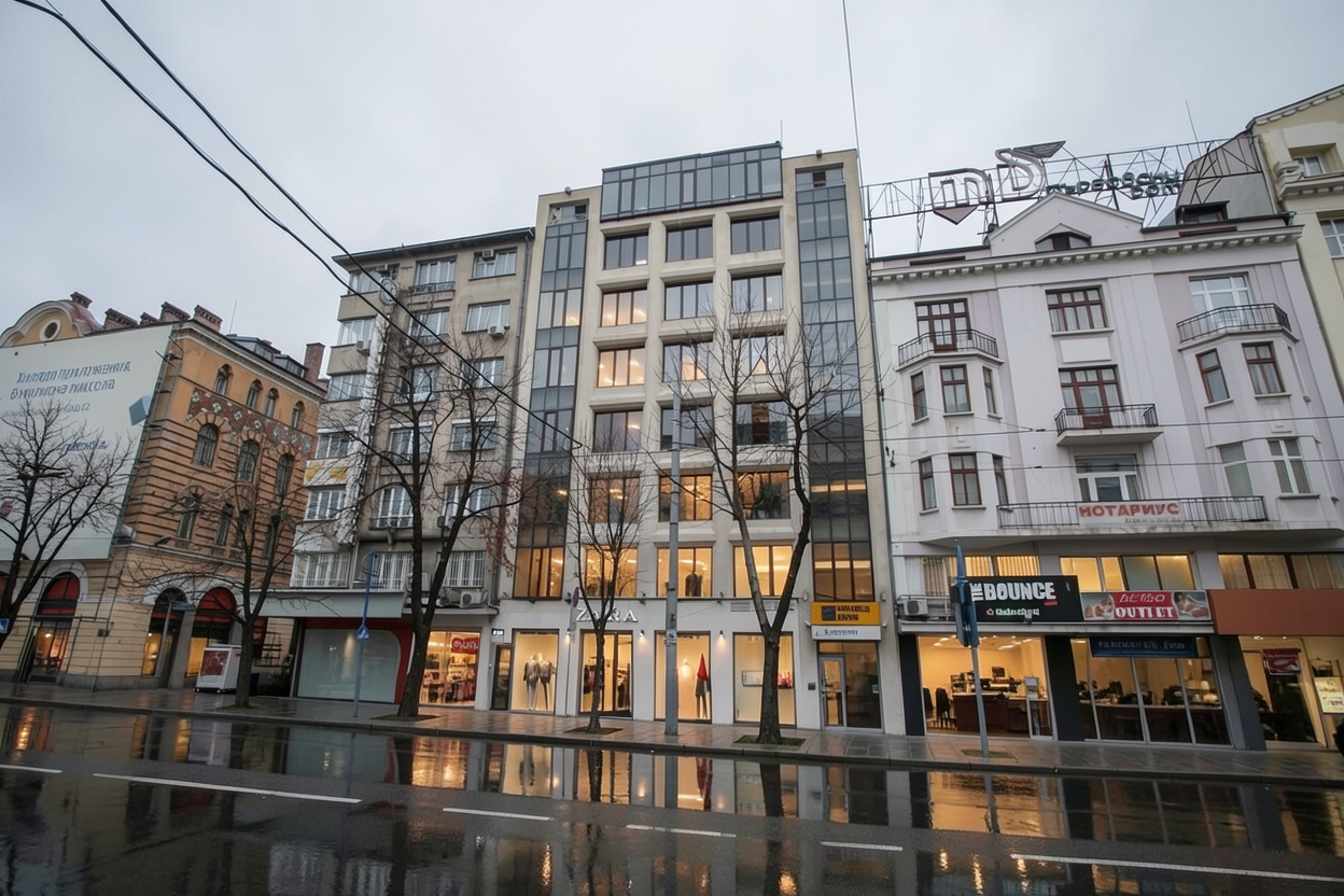 add black privacy fence coming off of the side of the house add large scale white square pavers with a seating arrangement around a modern fire pit add landscape