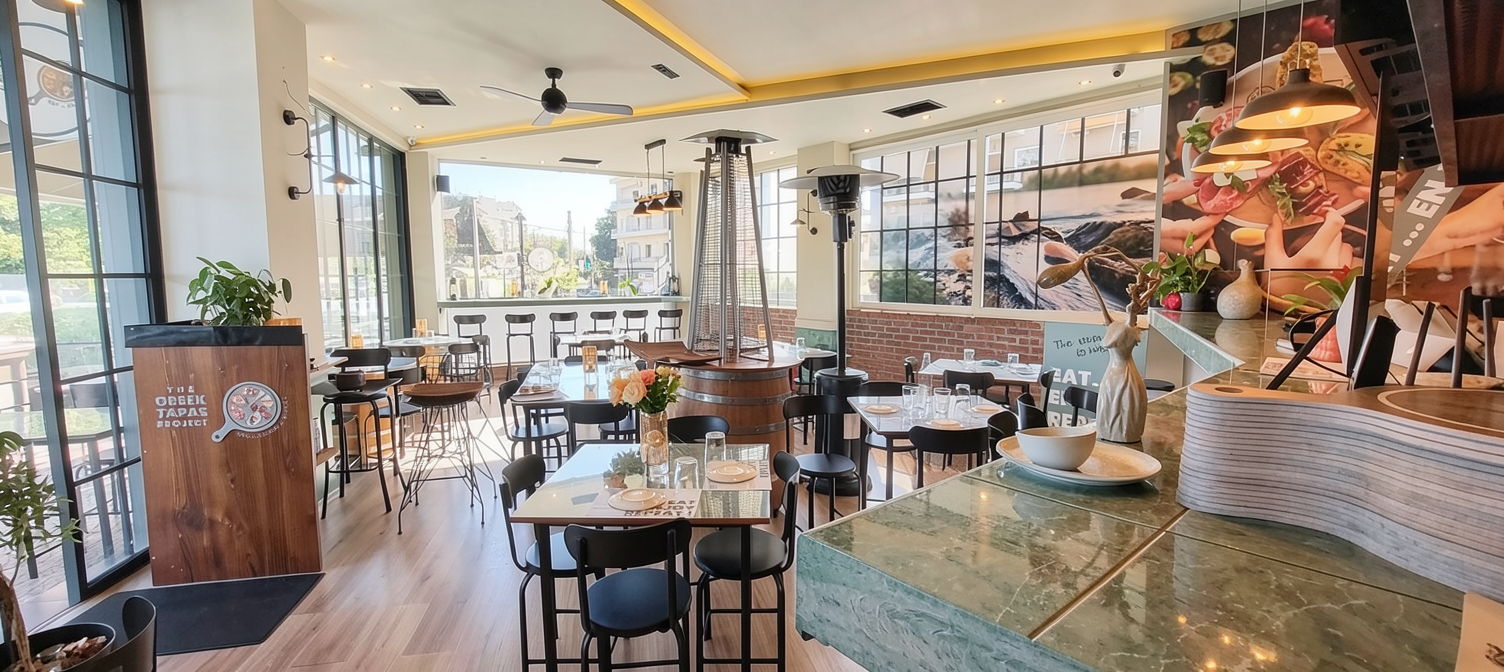 modify the photorealistic visual design between the toilet and the shower there is a pair of soft boucl women s slippers on the floor a thick soft pastel ochre towel is thrown over the toilet seat half hanging down from the toilet to the floor the white flowers on the counter are larger one of them gracefully leaning toward the mirror water from the shower forms small puddles on the floor and a slight mist is visible on the glass wall everything else remains completely unchanged