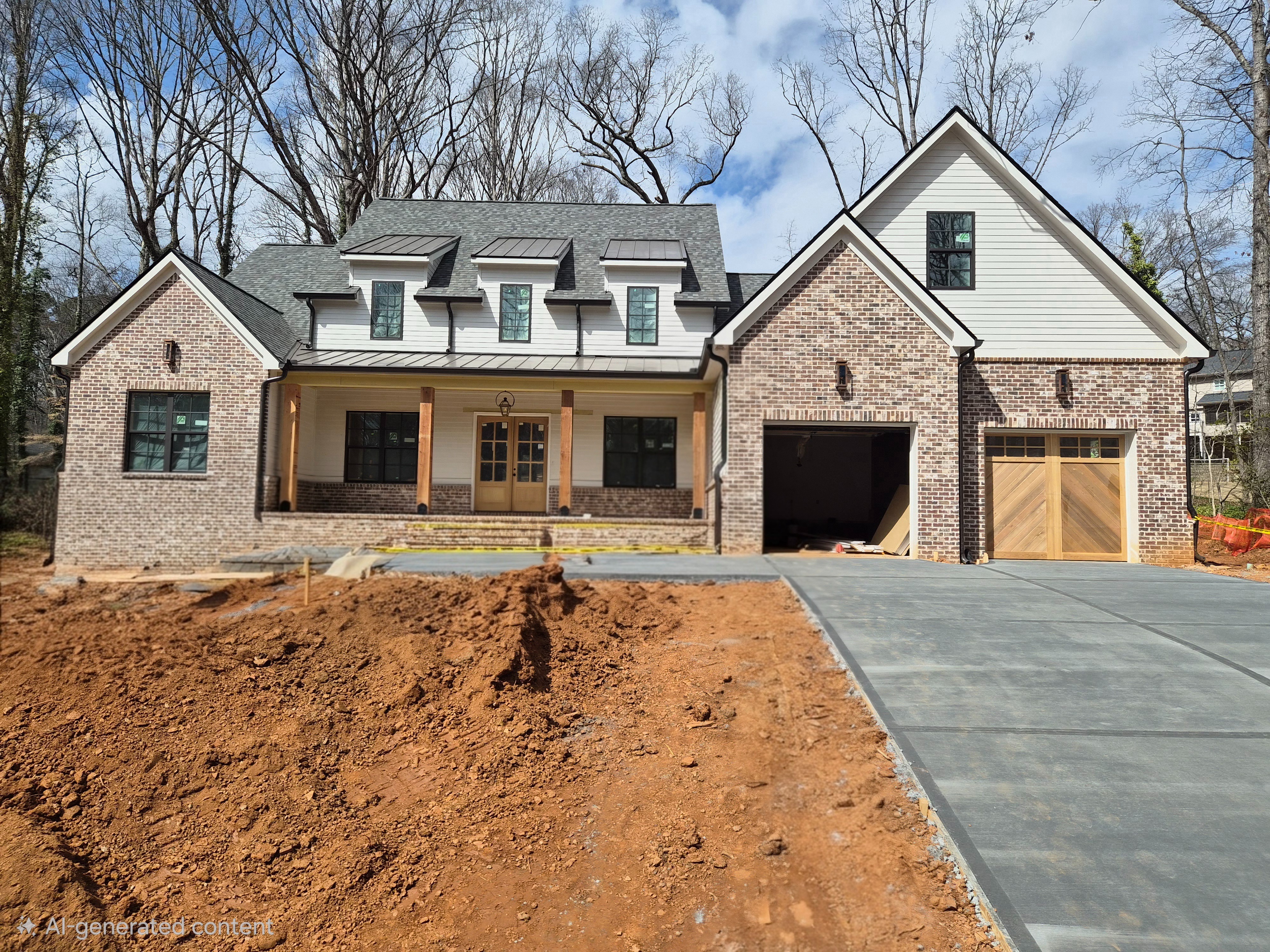 1 close left garage door same style garage door as the right side door 2 remove caution tape and red clay 3 add grass and landscaping