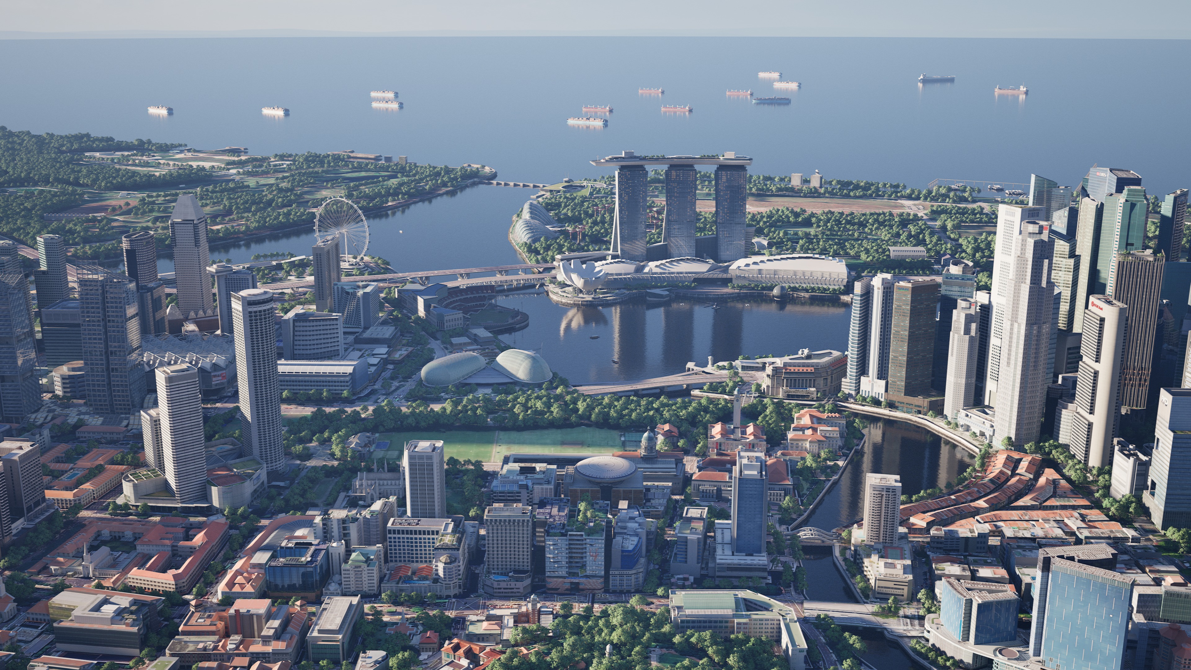 retain building design improve global illumination natural day color enhance water body with very subtle water wave amplitude dramatic water reflection and glitter photorealism