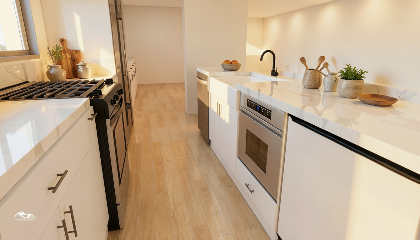 high gloss white cabinet warm ambience