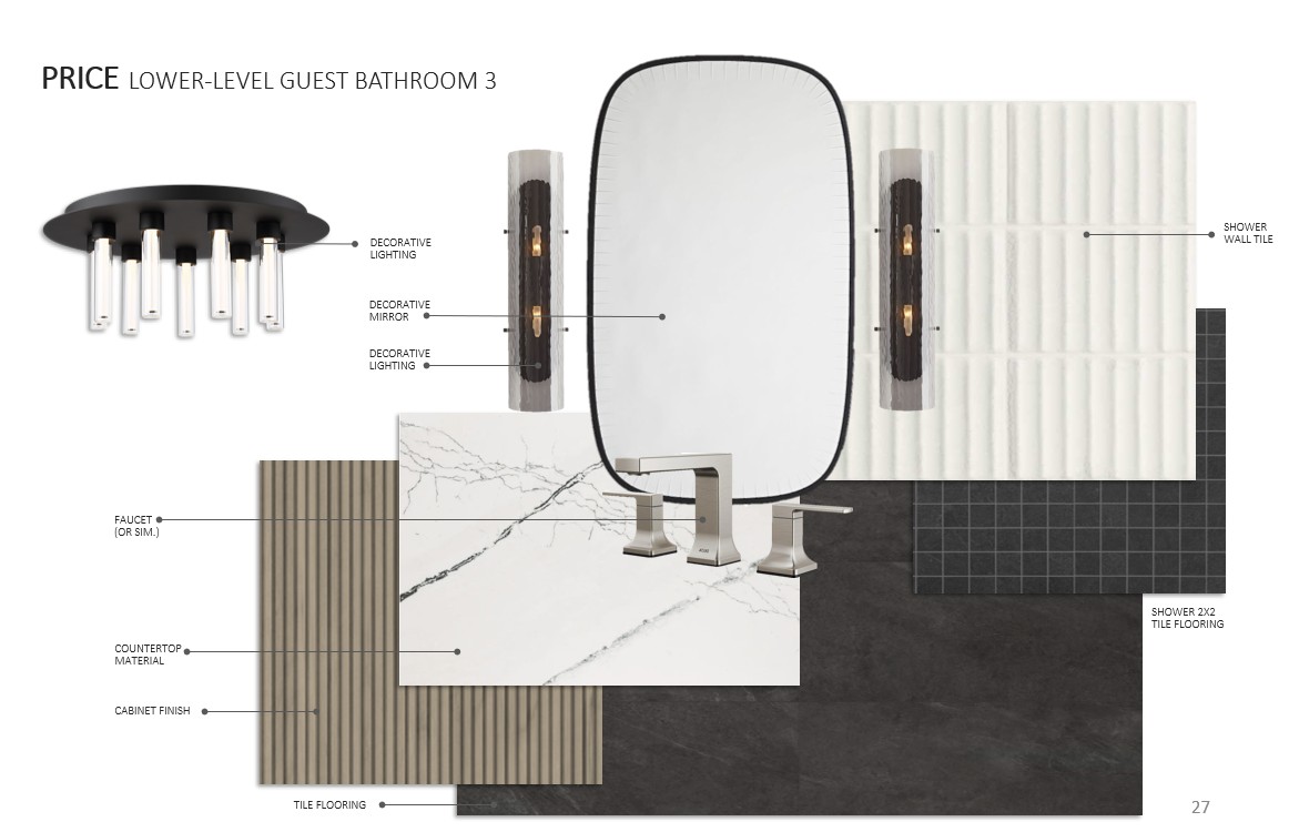 using the previous 3d image apply the finishes noted in the new file to the dedicated objects noted