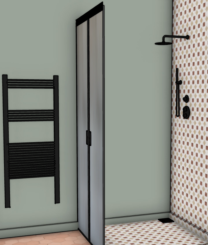 photorealist bathroom side view no window respect color and geometry