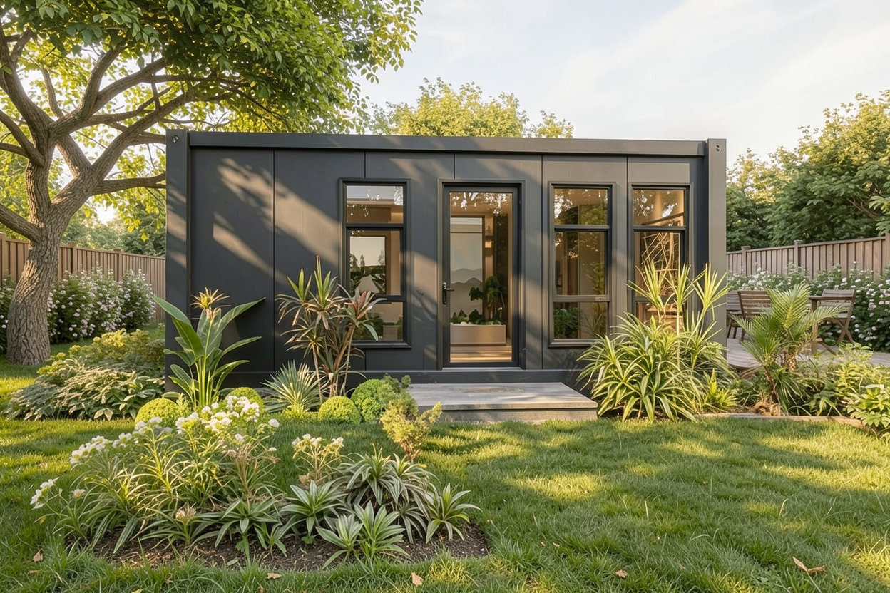 change background to a backyard with seating space