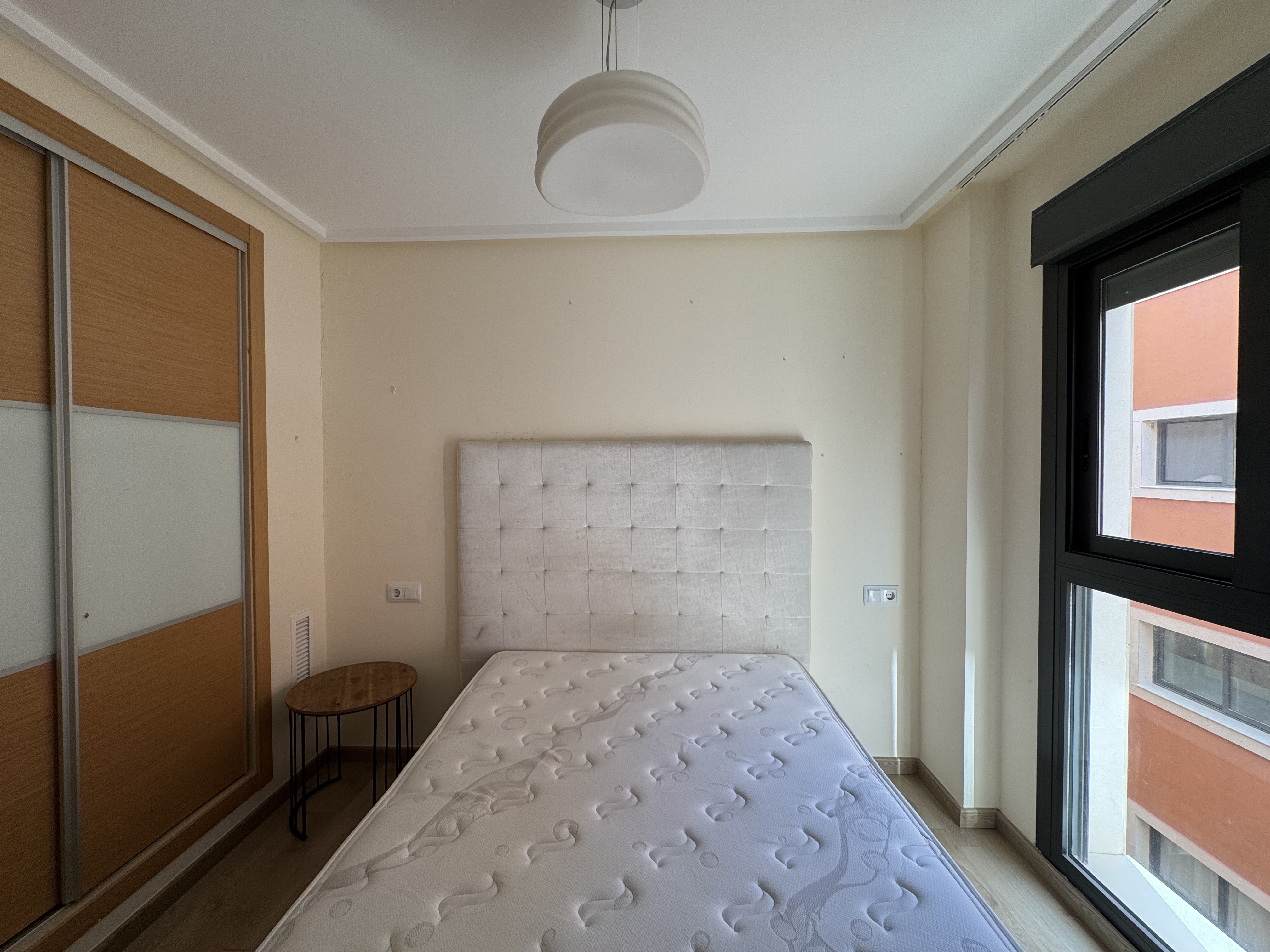 reviste la pared sobre la que apoya el cabecero actual de la cama con el panelado verde de la imagen de referencia quita esa cama y ese cabecero y pon una cama de 135cm de ancho vestida con tonos neutros y cojines a juego con el color de la pared de la imagen de referencia quita la l mpara de techo y pon un ventilador de techo