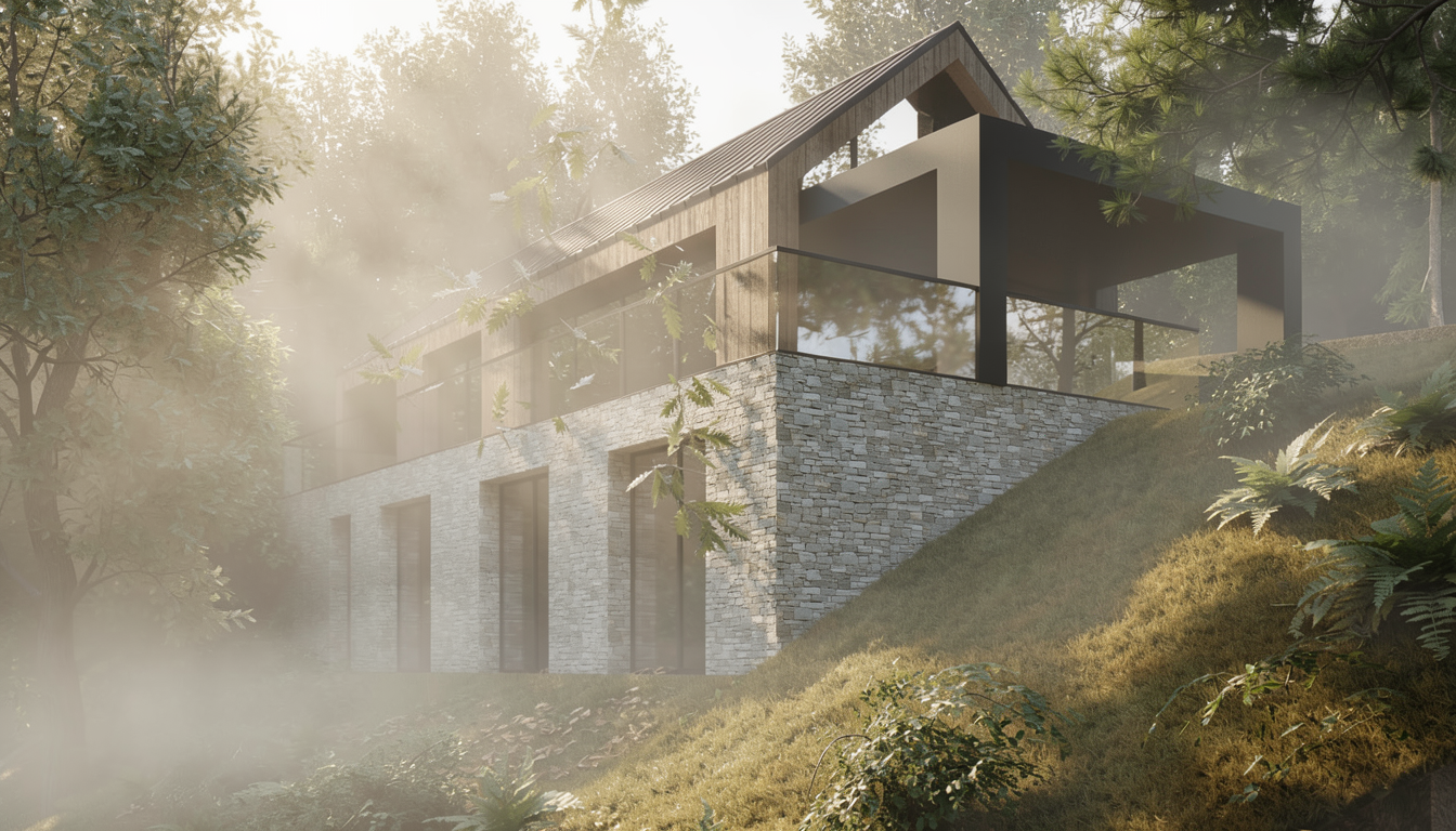 keep everything exactly the same in the rendering do not change the layout walls doors windows shower niche plumbing fixtures wall tile lighting vanity or any materials only make the tiles on the walls and the floor much larger and show the grain in the reference tile more make them wider and longer they are bigger then 16x48 going vertically on all walls and floor keep everything else exactly the same make the final image look like a realistic photo rendering with natural lighting and soft shadows
