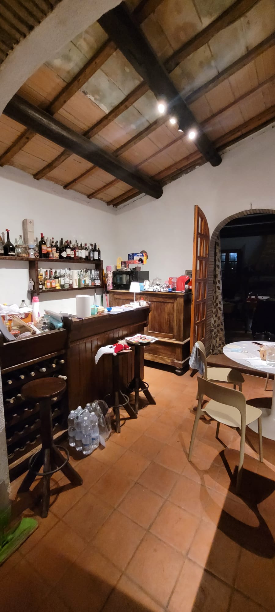 rimuovi tutti gli arredamenti interni presenti e sostituiscili con una zona moderna e alla moda per cene con amici per 8 persone con accessori