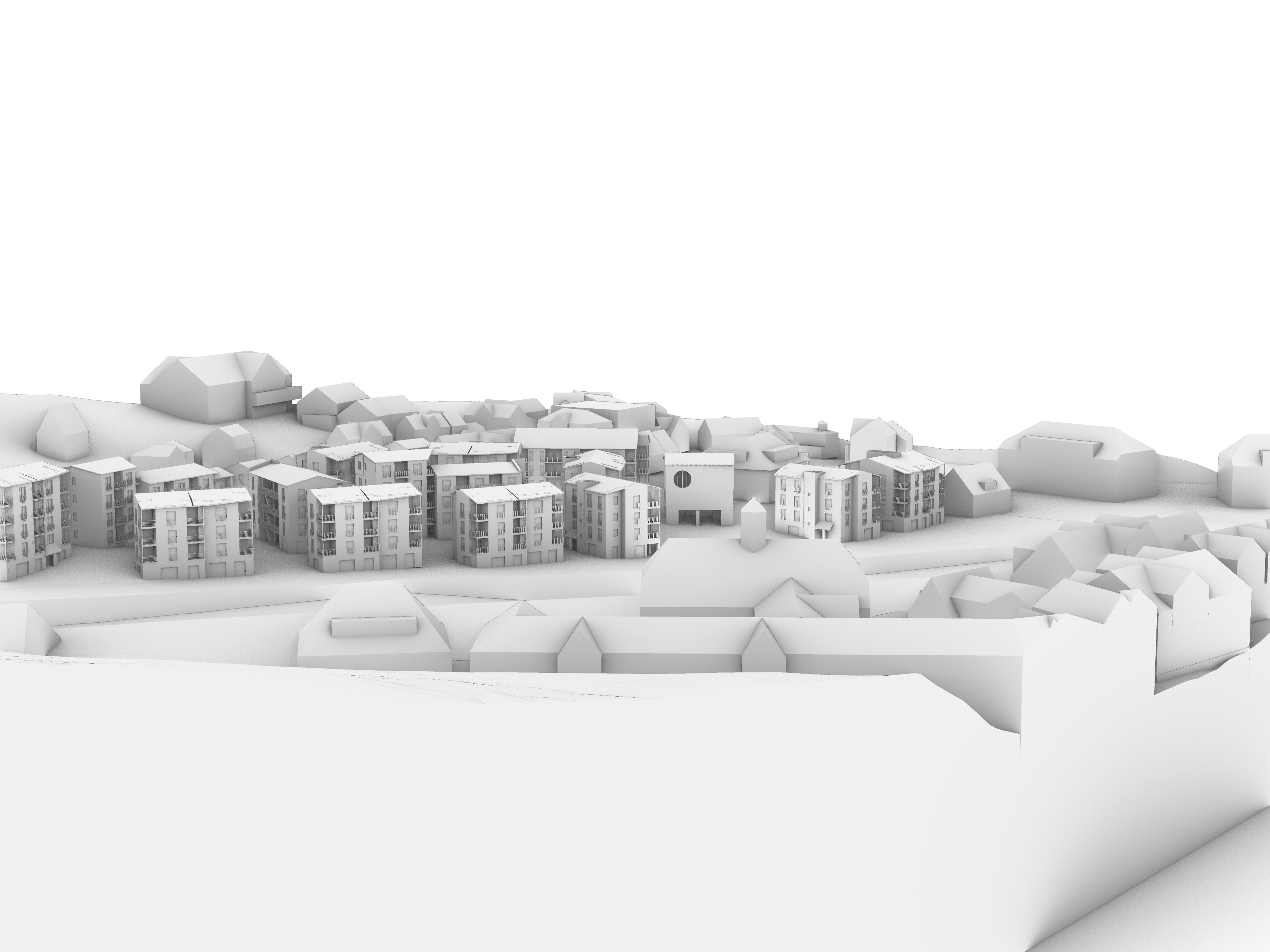 make it look like a white rough gypsum architectural model shot by 24 70mm f 2 8 lens in a black setting