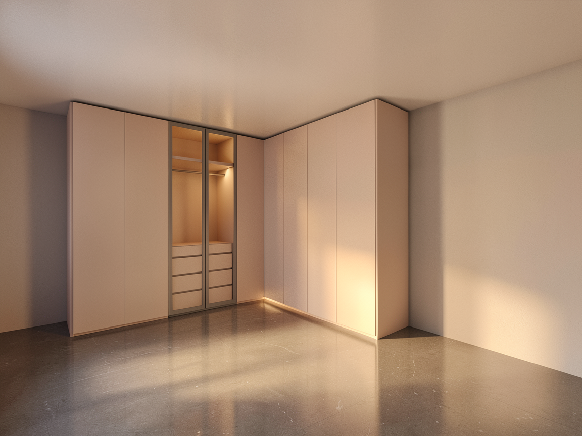 cozy ambient minimalist wardrobe soft colors no visible handles keep original nodes