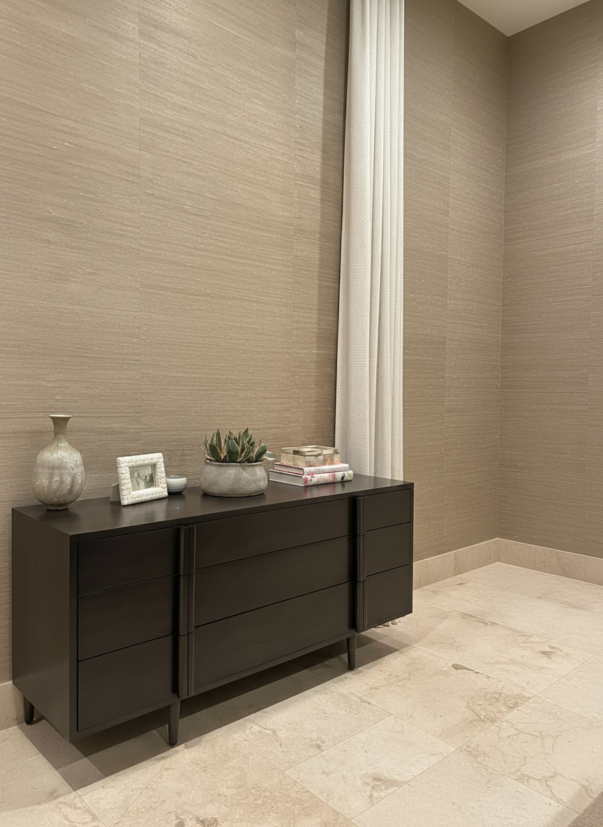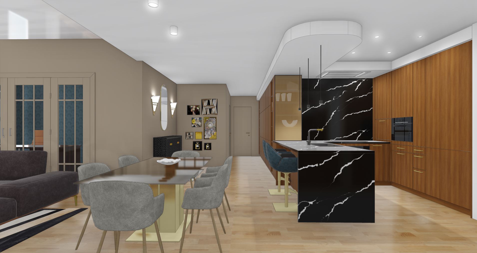 add white vase with cherry blossoms on the island moody light cabinets in matte flat doors do not change cabinets nor add open shelves don t add new cabinets don t add new windows foggy and sunny weather light inside wall glass cabinet