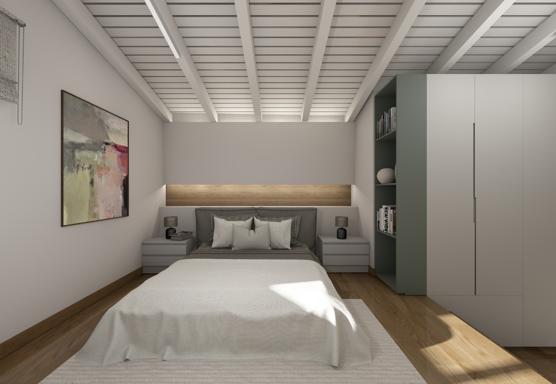 realistic interior room keep the design and the geometry of the photo color pallate balanced calm atmosheare