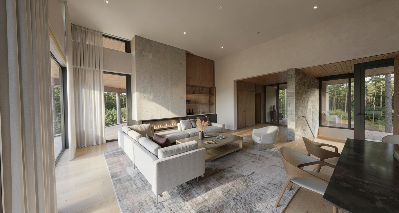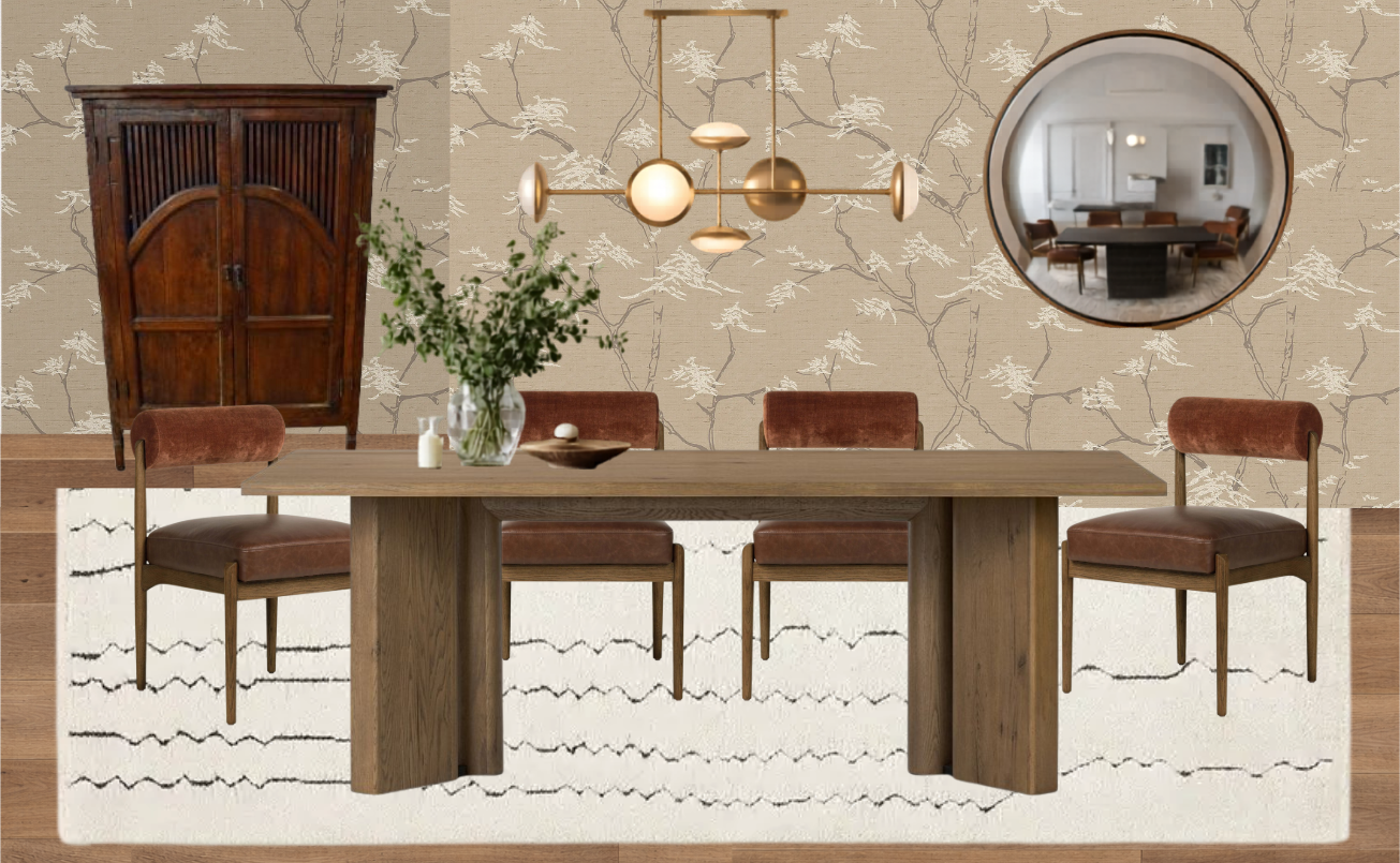 create a realistic photo rendering of this room keep light fixture as you see it in the photo please add a table scape