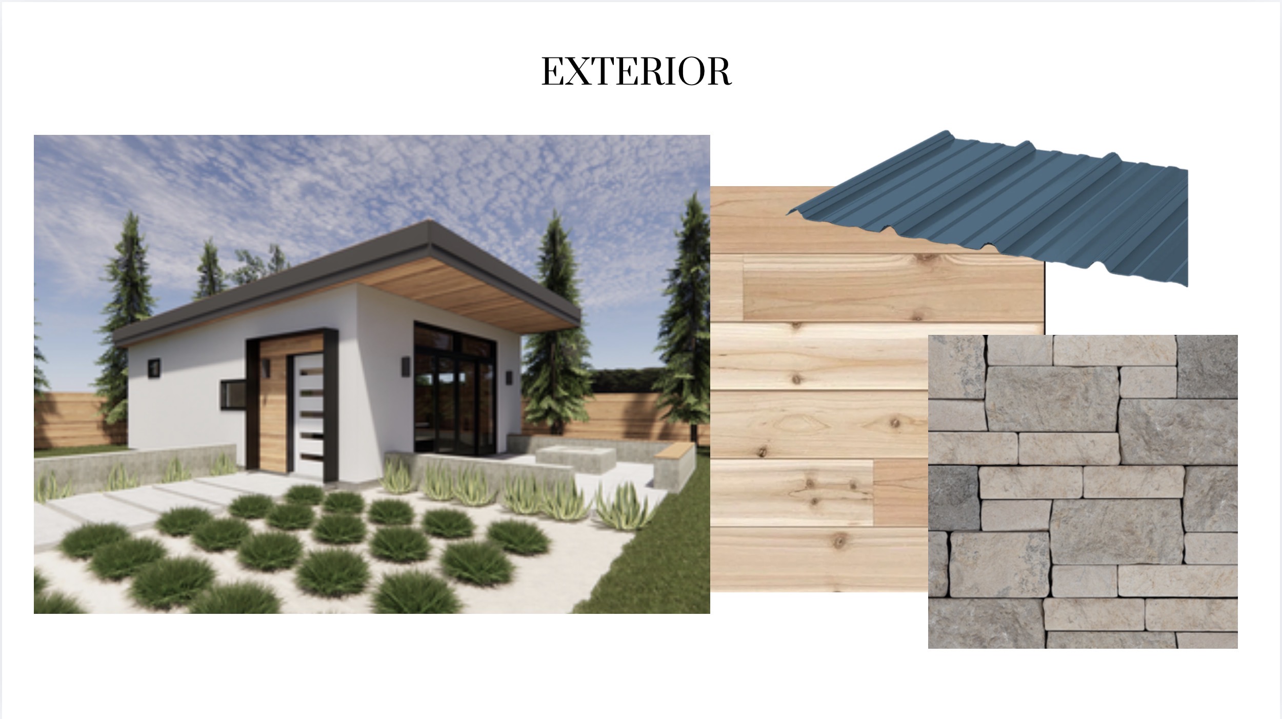 add the hawaiian blue colored metal roofing to this rendering and add stone accents