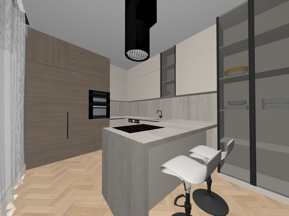 render put light under the upper cabinets put plates and glasses in the glass cabinet and hidden lights
