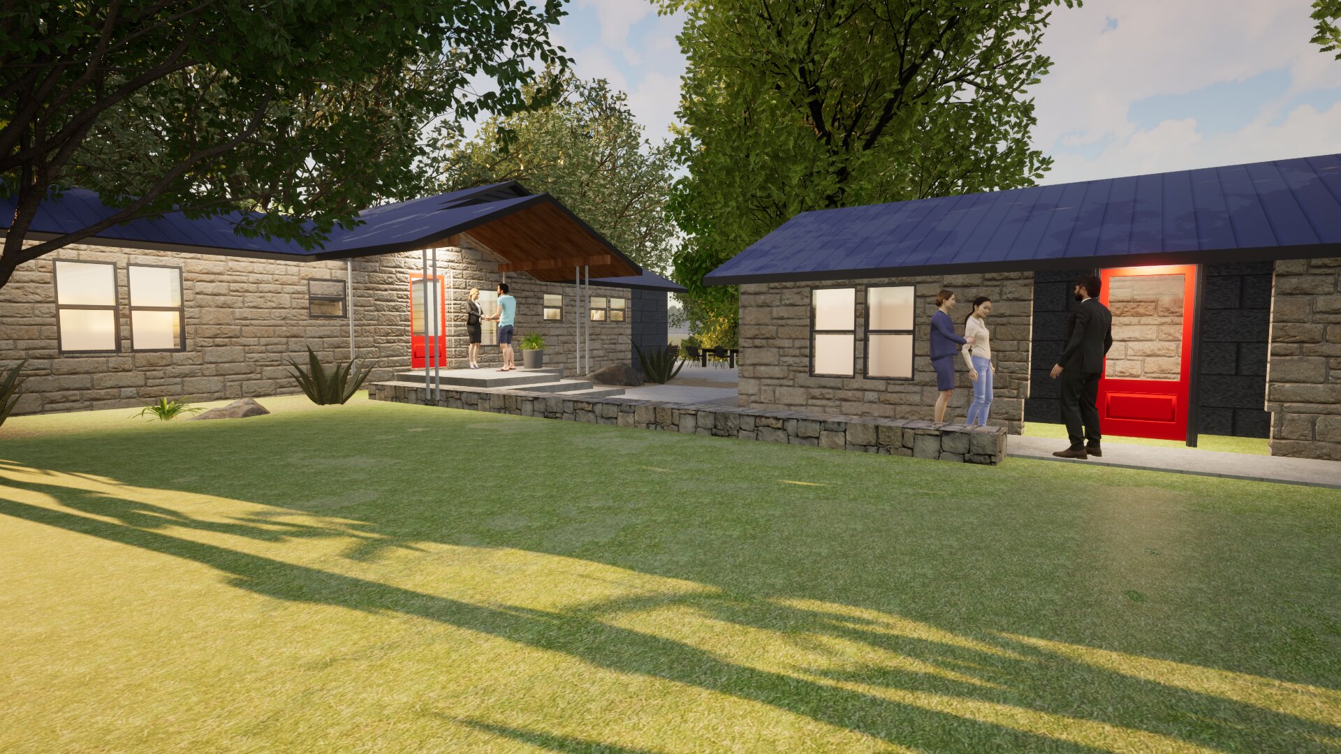 please take this image and replace the red door colors with sherwin williams tarnished treasure sw9118