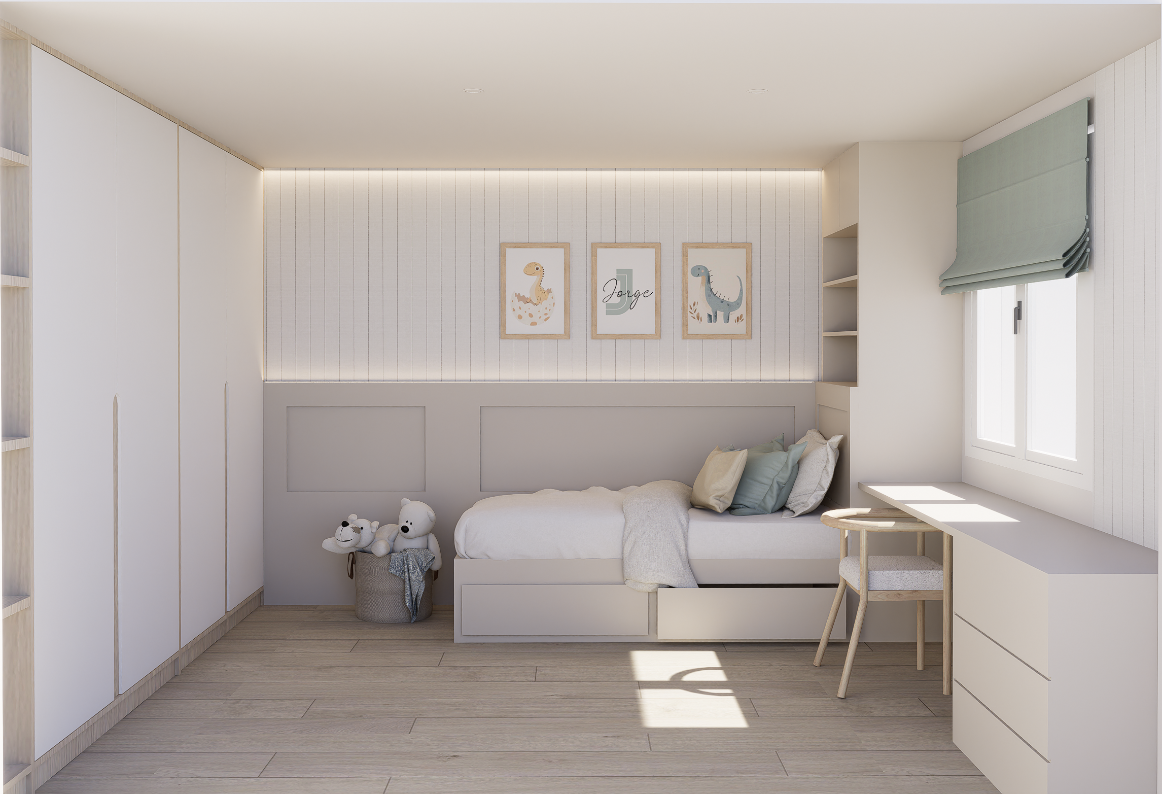 do not change anything in the original photo natural light and add books on the shelves and toys for 5 year old children leave the background of the window as it is now