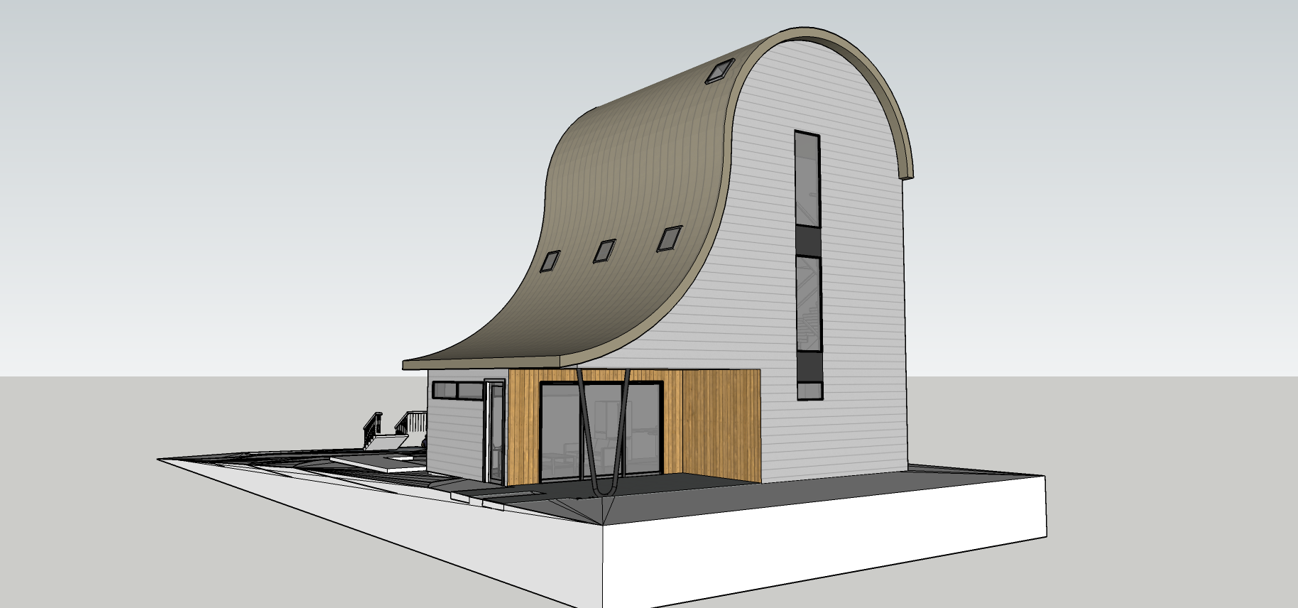 semi realistic render use real world lighting add vegetation in background and streetalong the front