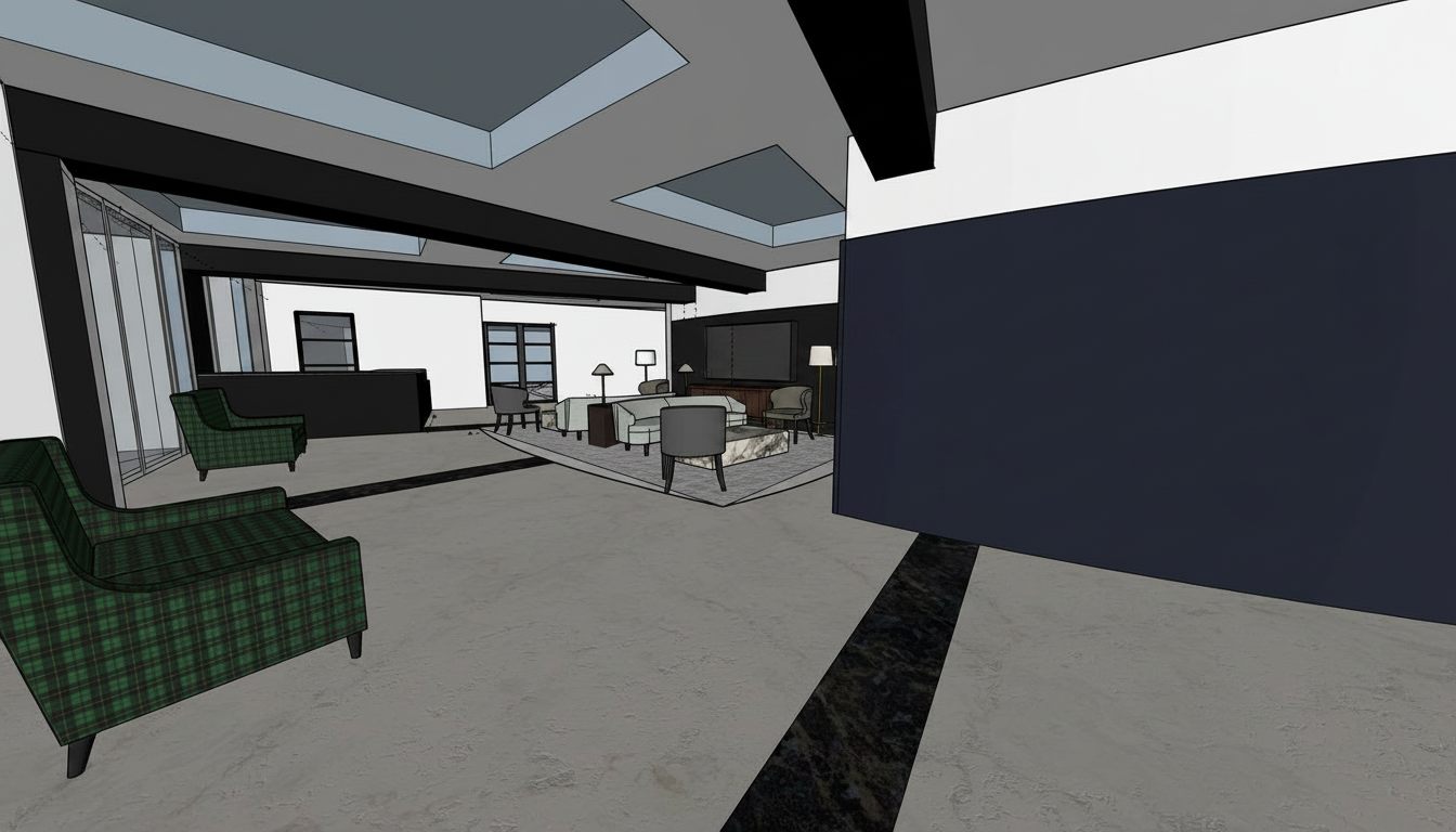 create a render in hyper realistic architectural visualization quality 8k resolution all objects furniture sanitary ware and architectural features must remain in place do not add any objects or delete anything from the image the spatial configuration must remain unchanged warmth gentle reflections soft shadows enhanced color richness and luxurious level realism improve depth and realism through wood grain richness brass highlights fabric texture and polished clarity while keeping the entire scene