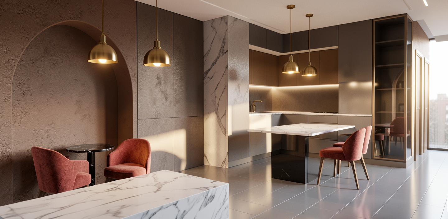 make this image ultra realistic do not change the furniture layout use realistic textures
