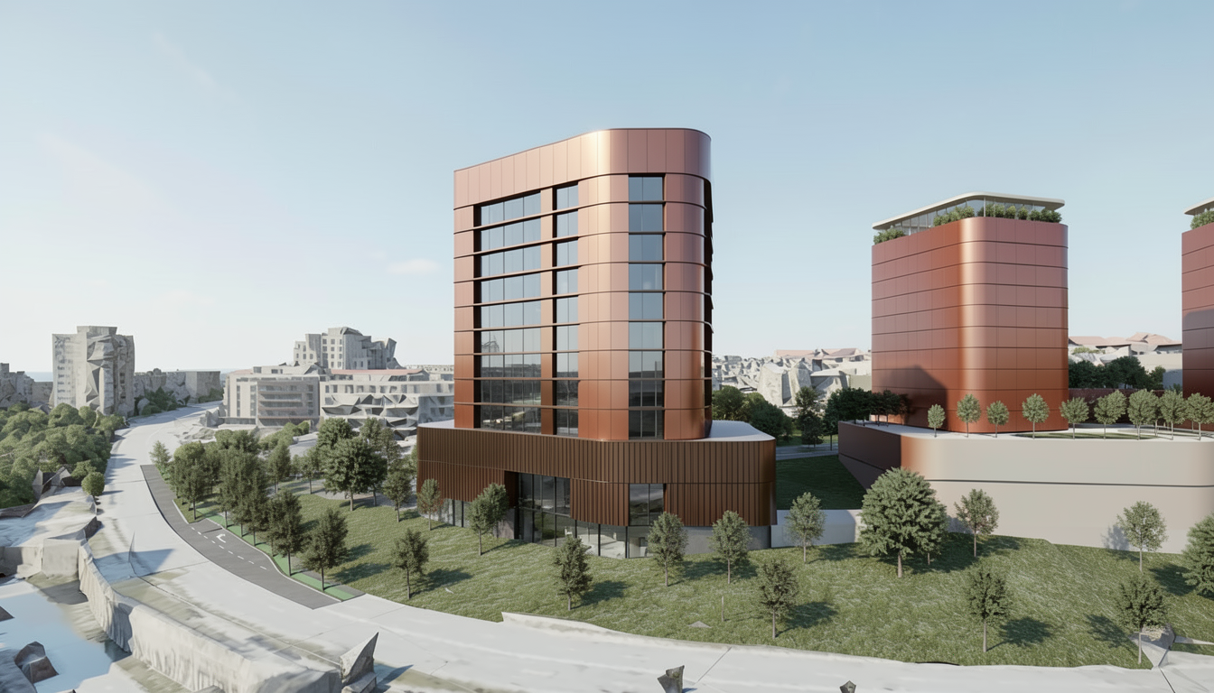 restyle the existing rendering to precisely match the fa ade articulation ground floor representation and upper level window design of the reference image strictly preserve original camera angle and perspective building massing and proportions exact number of floors existing slab positions a basement level a 6 0 m high ground floor a 6 0 m high first floor all surrounding context and site elements do not modify geometry floor heights slab alignment or structural rhythm the fa ade treatment must adapt exactly to the existing vertical structure basement demisol express the basement subtly integrated into the fa ade grid slightly darker tone or deeper shadow line at the base maintain alignment with upper fa ade modules no exaggerated plinth keep it refined and architectural ground floor 6 0 m height strict representation fully glazed transparent fa ade from slab to slab clear structural rhythm visible behind glass minimal mullions slender vertical framing no heavy vertical fins obstructing transparency strong interior visibility neutral clear glazing no mirror effect elegant recessed detailing at slab edge crisp structural expression the ground floor must feel open transparent and lighter than upper levels first floor 6 0 m height treated as a transitional level maintain vertical fa ade rhythm windows taller than upper repetitive floors slightly more openness compared to standard floors maintain strict slab alignment upper floors window design strict match strong vertical fins creating deep fa ade relief repetitive vertical modules aligned perfectly with slab divisions deep window recesses for pronounced shadow alternating subtle tonal variations within reddish brown muted terracotta palette rounded corners with continuous vertical glazing wrapping the edge only if present in original geometry clear and consistent vertical emphasis no horizontal strip windows no random glazing patterns windows must be vertically proportioned narrow and rhythmically repetitive matching the reference exactly materials color palette matte to satin reddish brown oxidized copper brown metal cladding slight tonal variation within the same color family neutral grey glazing no bright reds no black aluminum contrast lighting atmosphere clear daylight natural crisp shadows emphasizing fa ade depth balanced exposure clean architectural photography style no sunset tones no dramatic mood rendering style high end european architectural visualization sharp detailing realistic materials controlled contrast professional presentation do not alter floor heights basement 6 m ground floor 6 m first floor perspective geometry window alignment or context adjust only fa ade articulation materiality glazing design and representation style to strictly match the reference image 3 messages remaining upgrade to chatgpt go to keep the conversation going upgrade to go