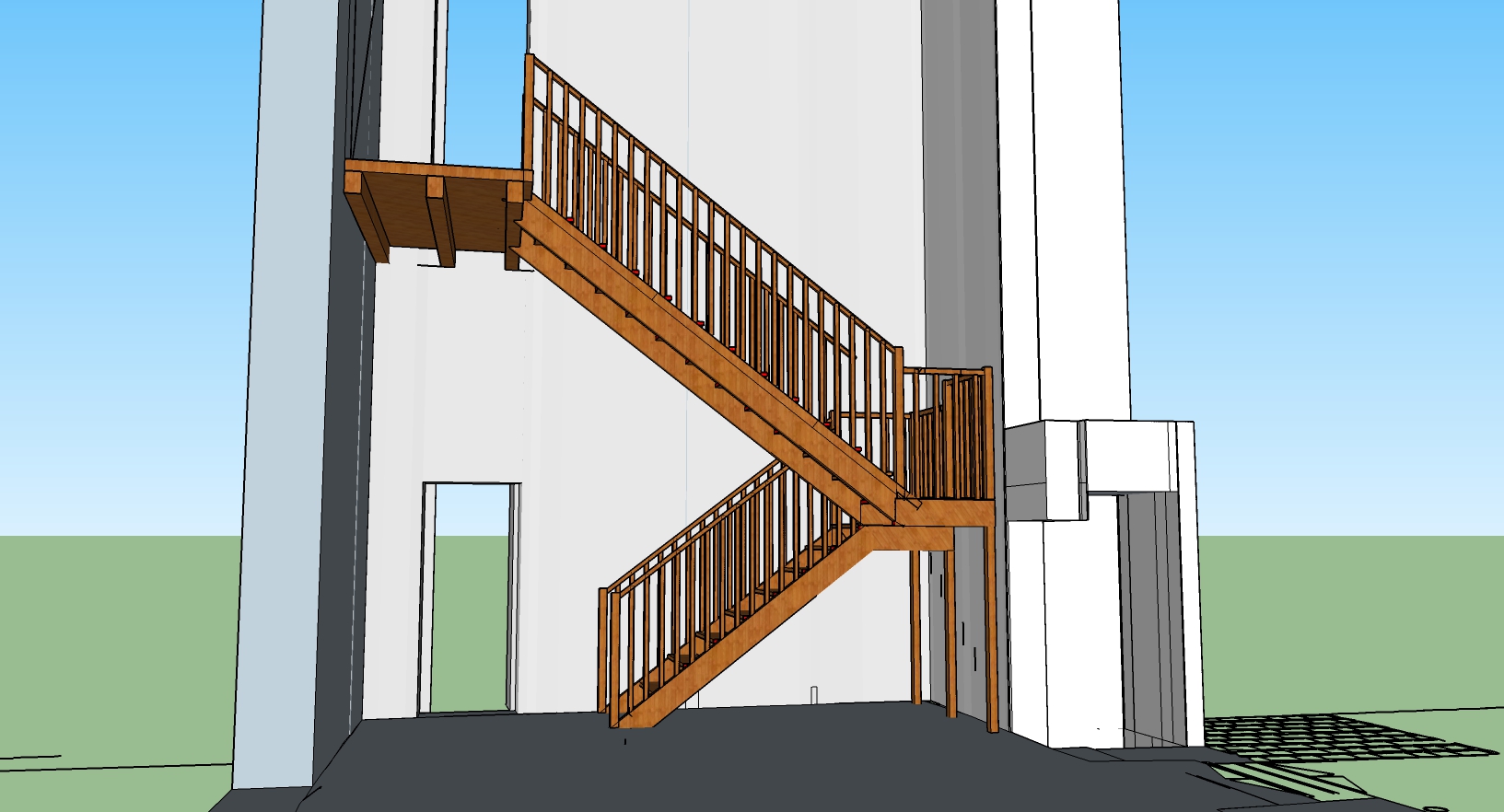 photorealistic render of the 2d staircase model rustic style the staircase is made of rustic wood the floor is terracotta tiles and the walls are light plaster natural lighting warm tones realistic textures highly detailed architecture