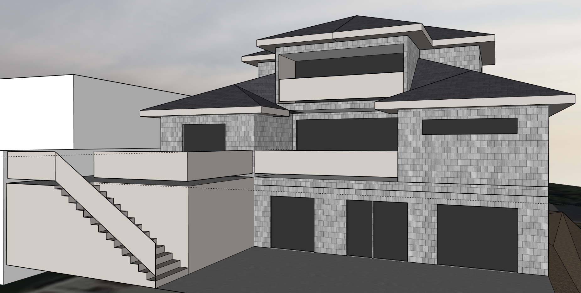 colonial revival exterior shot gray and white cottage steel glass windows all openings balconies architecture