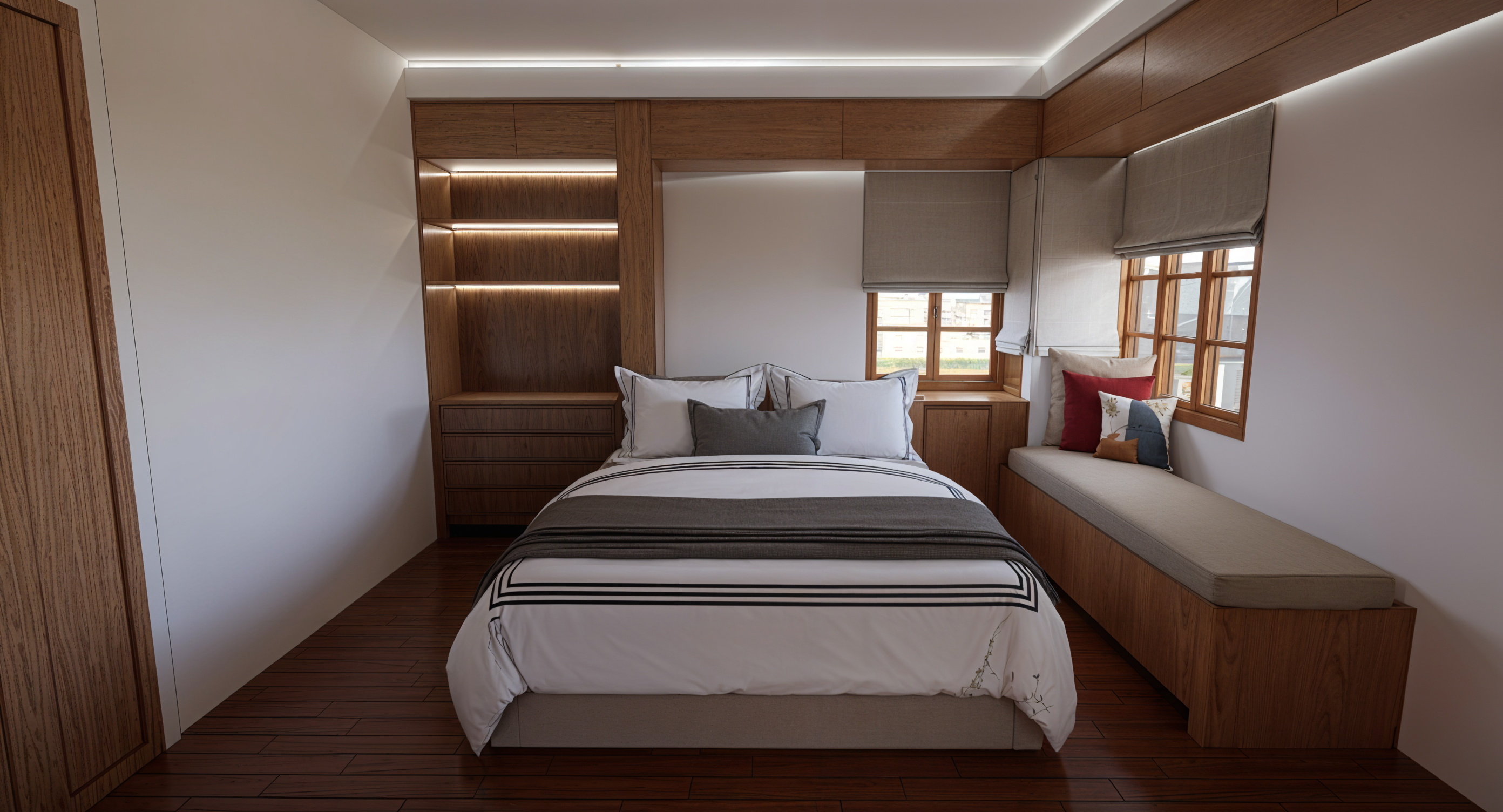 interior shot enhance the original living room render without changing any existing elements composition or furniture only adjust materials lighting and color tones to match the warm contemporary mood board apply soft natural morning light with gentle highlights and realistic shadows refine materials to have matte beige walls walnut toned wood surfaces and linen or wool textured fabrics keep the palette warm and neutral cream sand taupe and caramel hues enhance overall contrast softly for depth while maintaining natural color balance ensure all surfaces show tactile realism and a cozy elegant ambience consistent with the mood board keep reflections subtle lighting cinematic yet natural and atmosphere serene architecture