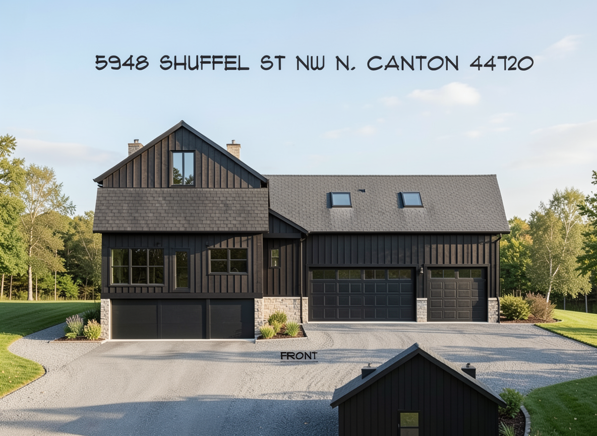 lawn and shrubs driveway on right side of house in front of garage sidewalk