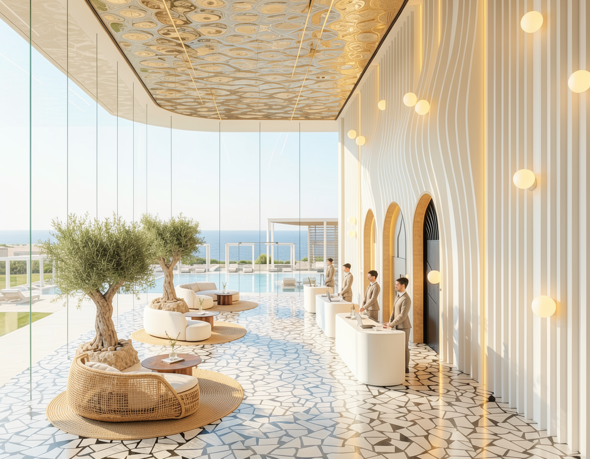 we have janette table from kave home sofa sis cognac suede leather the walls are an offwhite near the table we have a mirror with flack frame riflajele sunt din duropolimer vopsit in aceasta culoare oglinda e de jos pana sus si are rama profil negru simplu tapetul este intr o nisa int un intrand in dreapta avem un menta ou rata ca si culoare care vine pe peretele cu aerul conditionat si se continua si pe perete parchetul e mai spre gri
