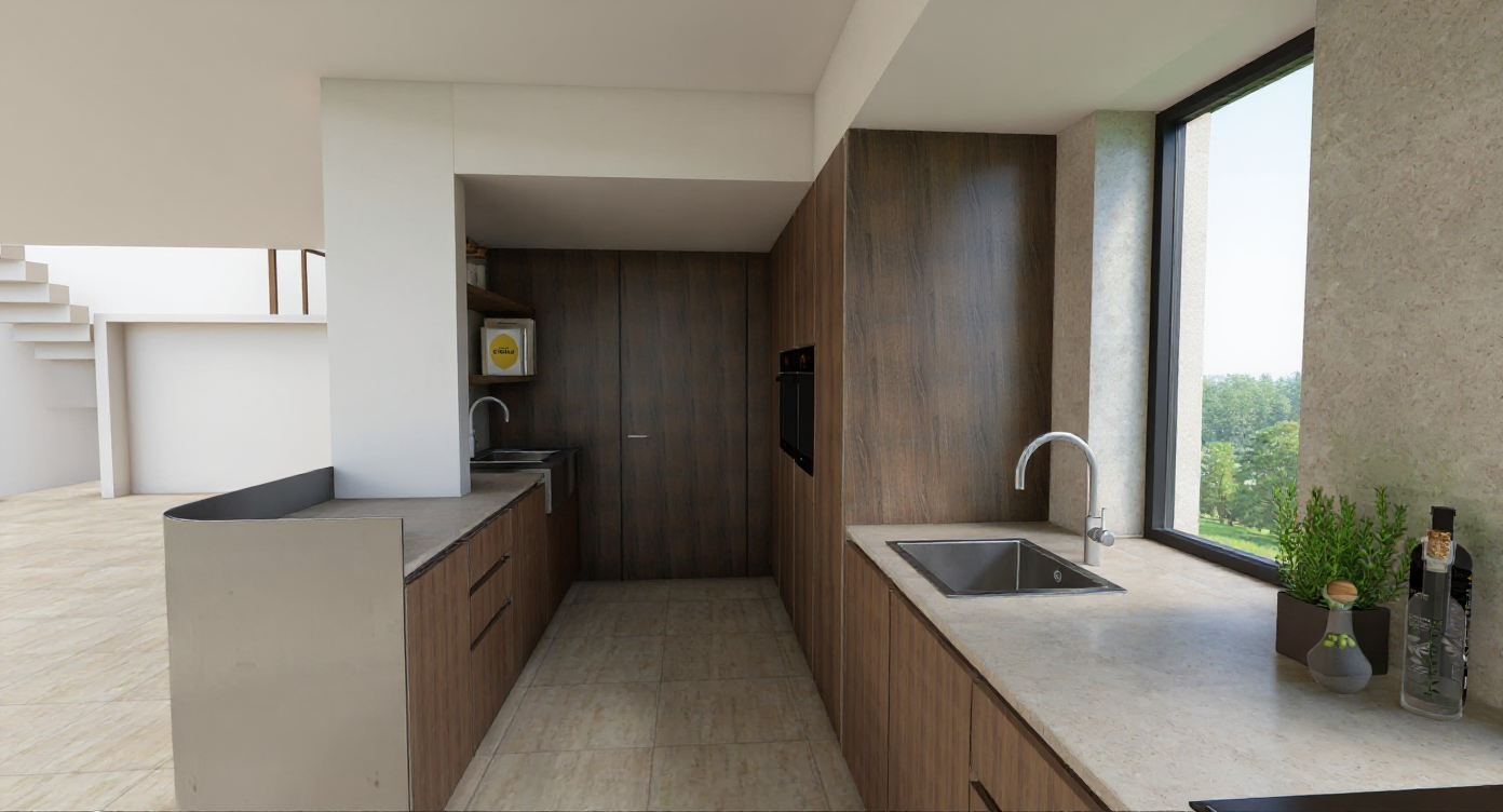 vyrendruj vo fotorealistickom preveden dopln kvetinovy zahon na zelene plochy oranzovu plochu ponechaj ako sportovu plochu s detskymi prvkami preliezkami smyklavkou a dopln deti na preliezky a dospelych ludi na lavicky ktore budu pri mure panely na mure ponechaj