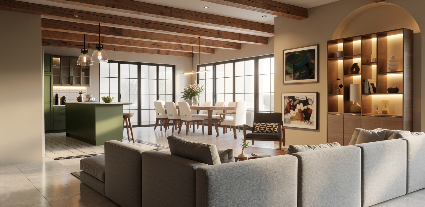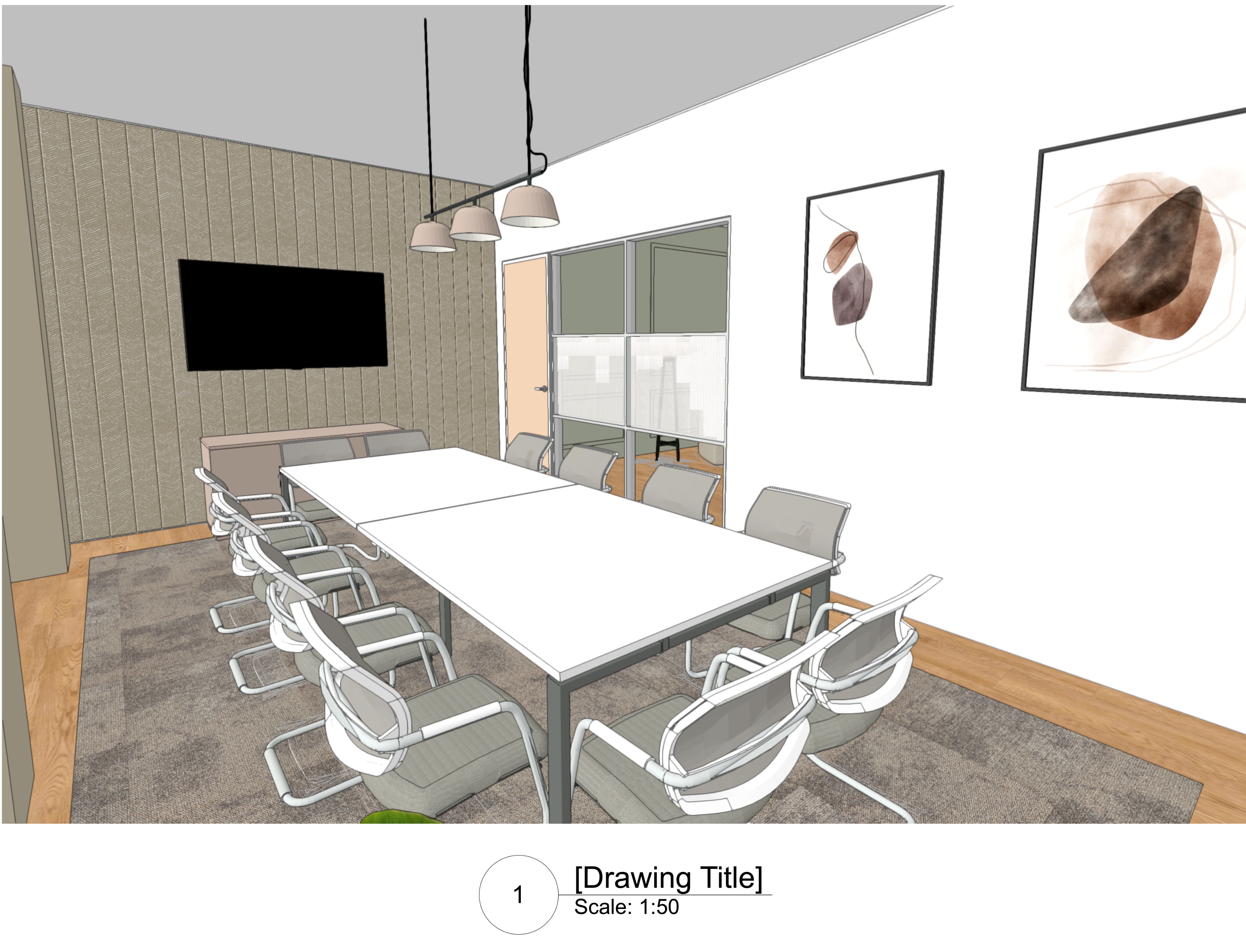 add soft natural lighting and shadows make the space look much brighter and realistic add soft glow to pendant light the back wall should be a beige acoustic felt