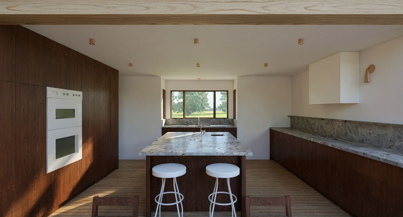 interior shot led lights with warm white that are illuminted the bulkheads have led strips that light up and illuminate the off shutter concrete slab architecture