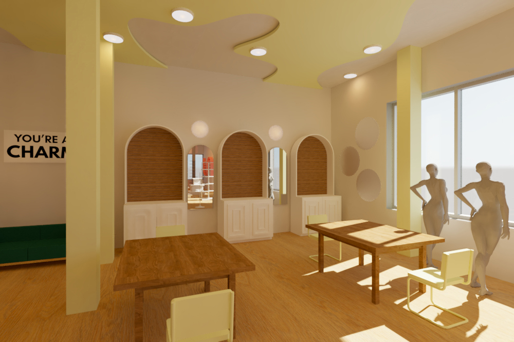 add eyewear to slat wall displays on the wall on mannequins add scarves hats purses and lighting on ceiling
