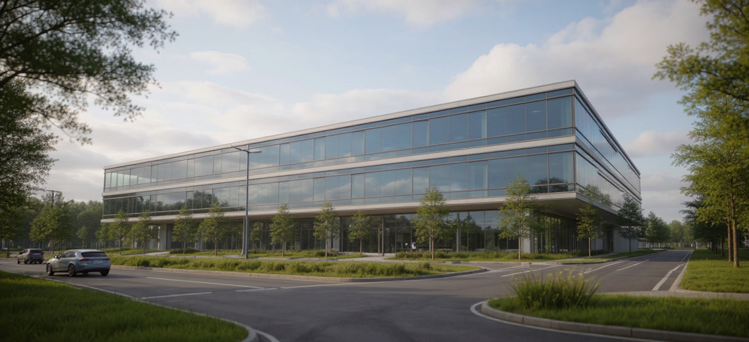 make another view of this buildin as if you are in front of it and entering it in the middle