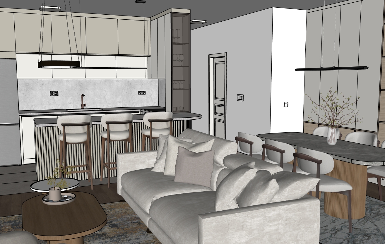 keep colors textures shapes don t change anything bottom of the bar is same color as front of the shelves make photo realistic with natural day light light come from camera corner door and molding on the doors are same color light beige