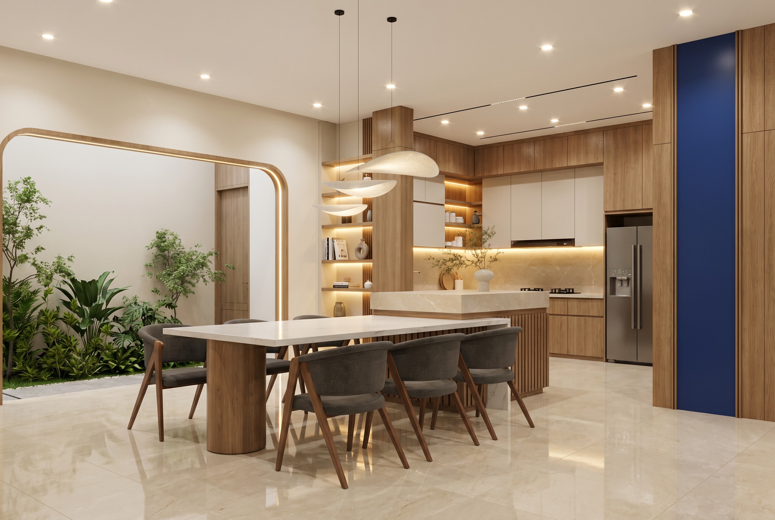 the blue color is bronze mirror and delete 2 shelves of the partition and change island cabinet into cream color same as kitchen cabinet