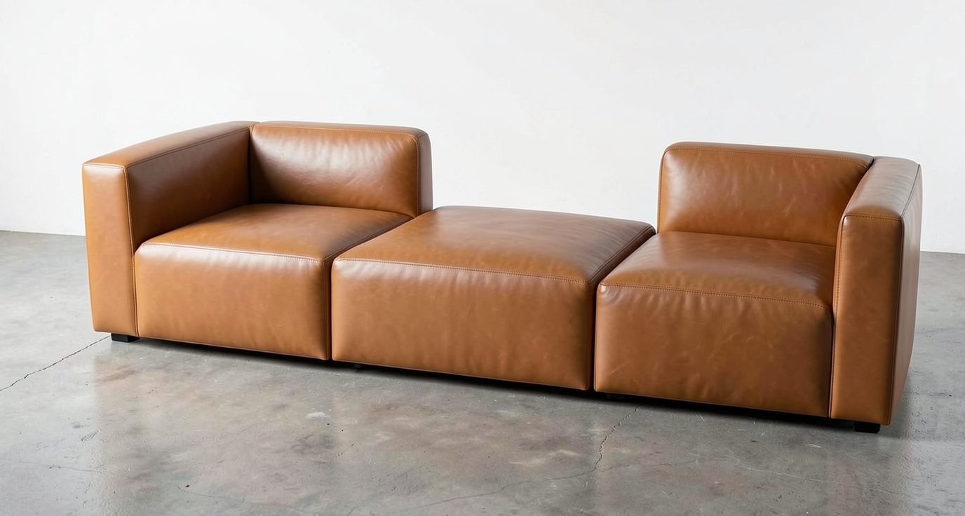 modern sofa on a concrete floor and white background reddish brown boucle upholstery