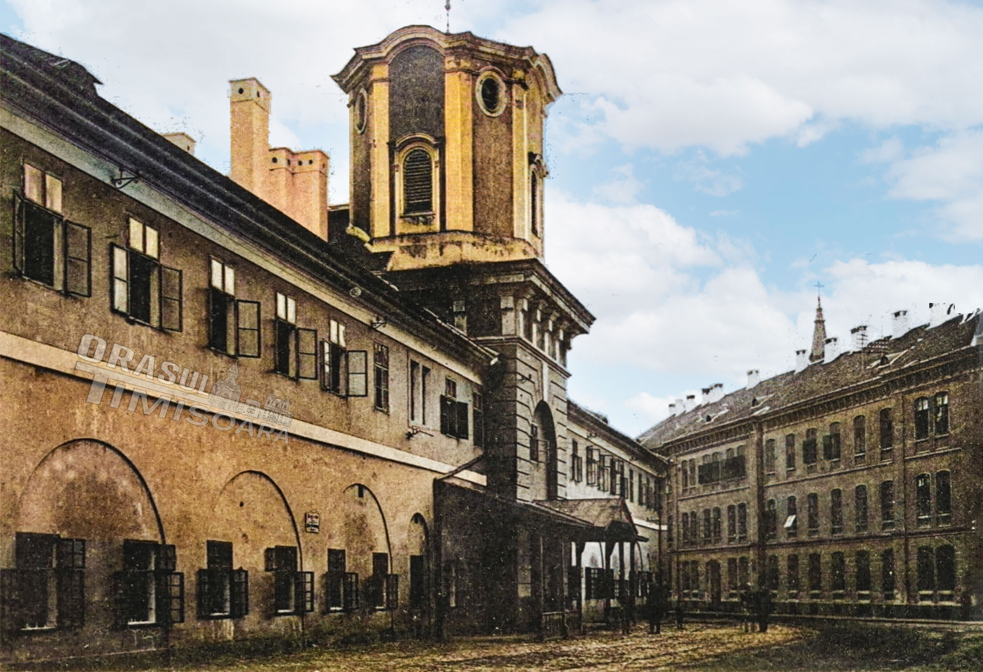 the right building is with stucco facade rmove white text from the picture on the left