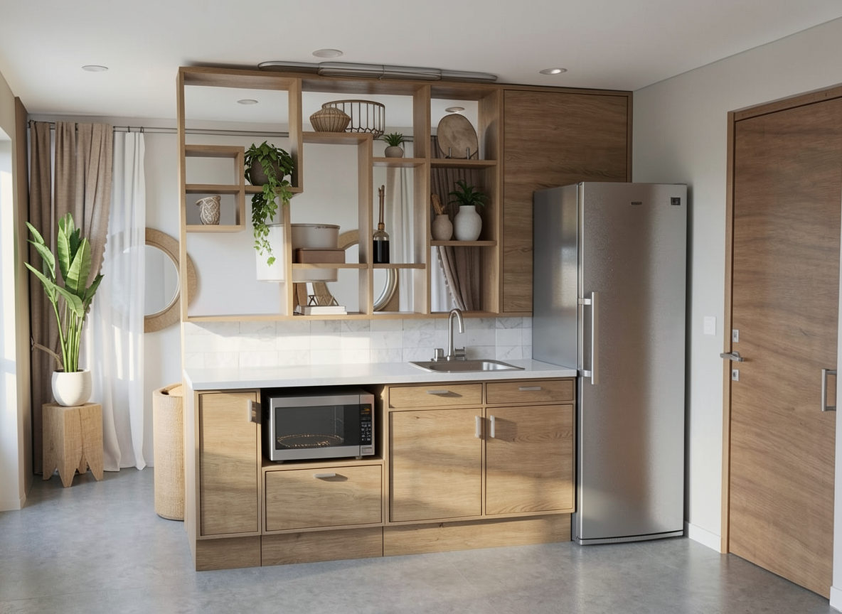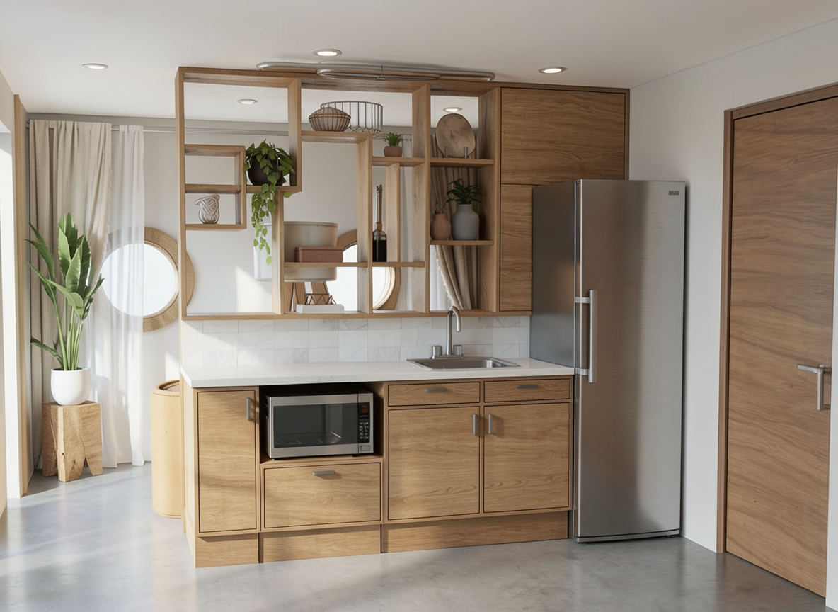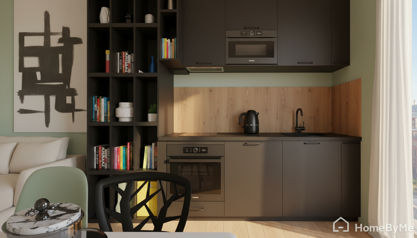 prompt archsynth english create a realistic 3d rendering based strictly on the provided architectural elevation drawing the geometry proportions and layout must follow the elevation exactly do not reinterpret the design important all annotations indicated by arrows in the drawing must be reproduced exactly as written and placed in the same positions the text content must remain identical to the original drawing the rendering must represent the project from inside the room as if the viewer is standing inside the kitchen space looking at the built wall the view should not show the roof or any exterior structure only the interior space and the designed wall elements should be visible the kitchen composition is structured as a linear built in wall with vertical cabinetry columns these columns frame the kitchen composition and integrate storage elements between these columns the design includes niches countertop areas and integrated elements as described in the elevation the rendering must clearly show the architectural volumes including vertical cabinetry columns recessed niches plastered wall surfaces walnut wood cabinetry elements marble backsplash and marble countertop green marble 3 cm thickness integrated electrical outlets led strips inside niches wall lights materials must appear realistic stone plaster walnut wood marble metal lighting should be soft architectural interior lighting highlighting volumes recesses and materials without altering the design camera view a slightly angled interior perspective allowing the viewer to understand the depth of the niches the columns and the full kitchen composition while remaining faithful to the original elevation the final image must look like a professional architectural visualization generated directly from the elevation drawing without modifying dimensions proportions or design elements petit tip d architecte pour les ia de rendu tr s utile ajoute souvent cette ligne finale follow the drawing strictly do not redesign simplify or reinterpret any element