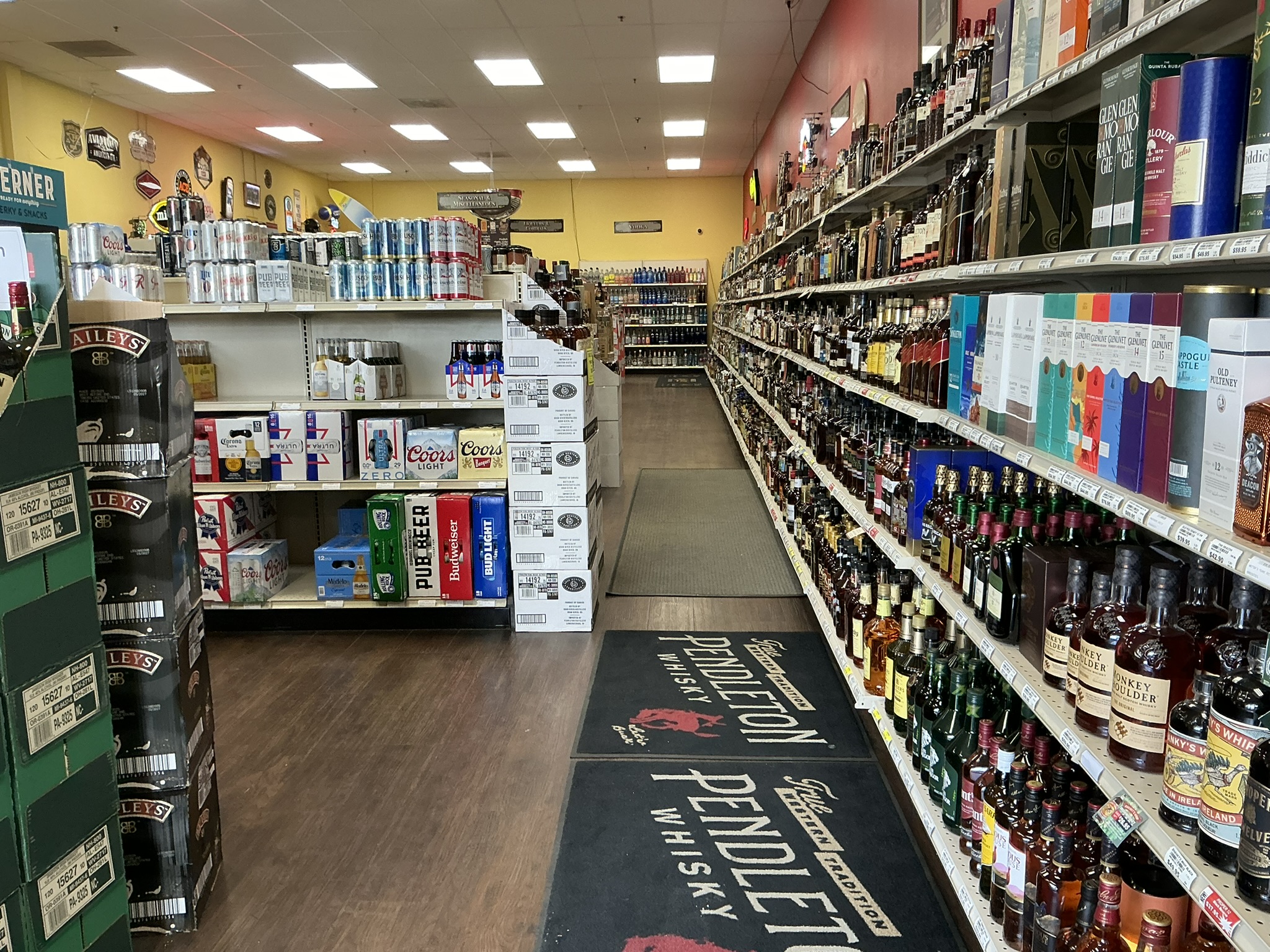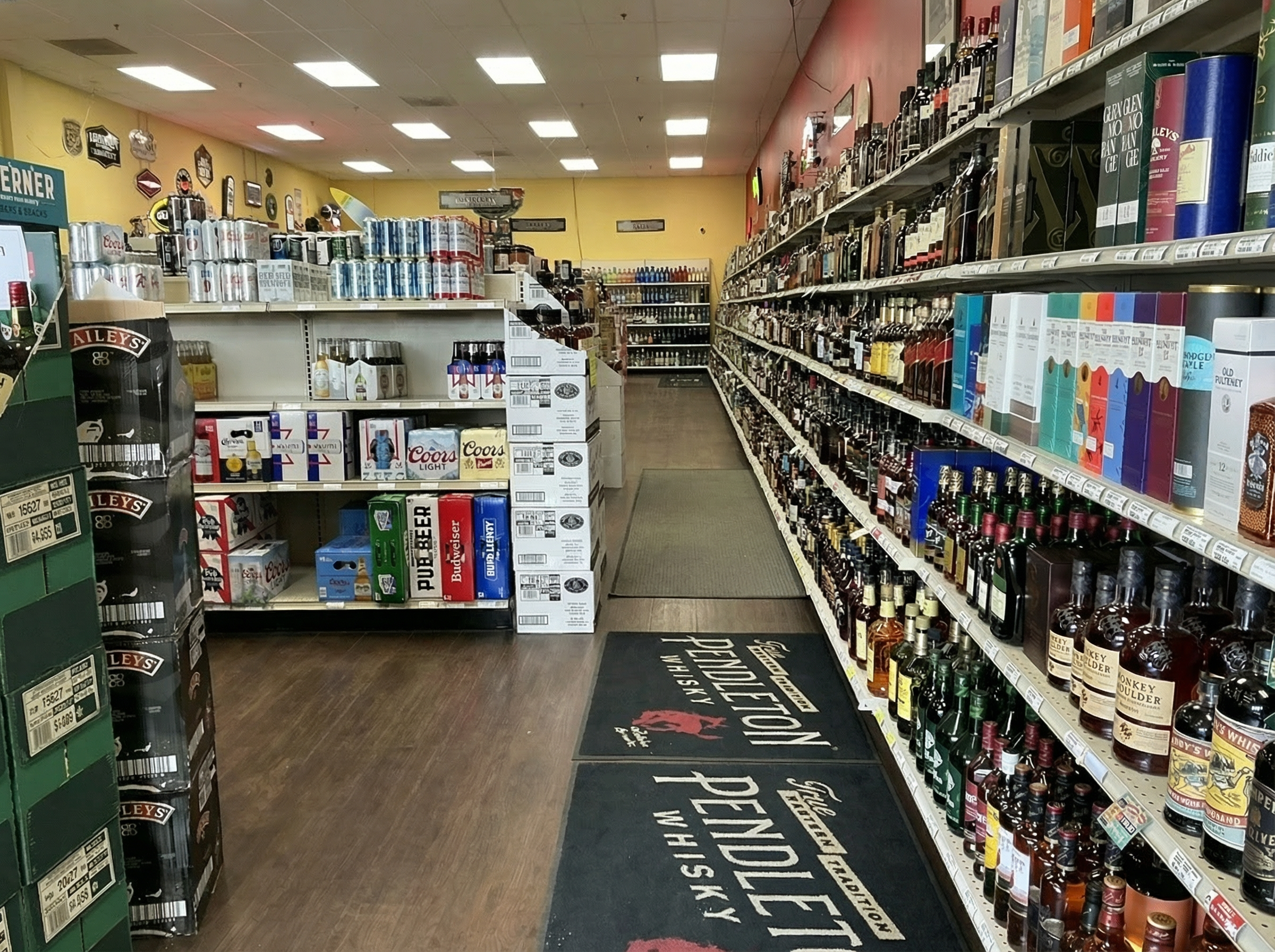 eco friendly wood and greenery liquor store