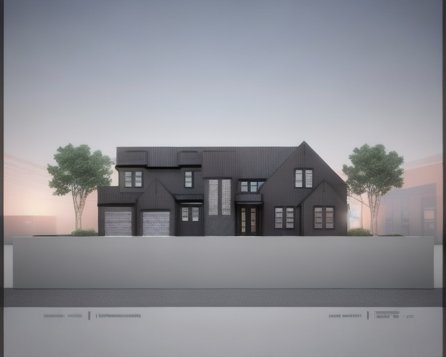 render a modern house featuring a beige linear brick facade with dark gray roofing the windows are large architecture architecture