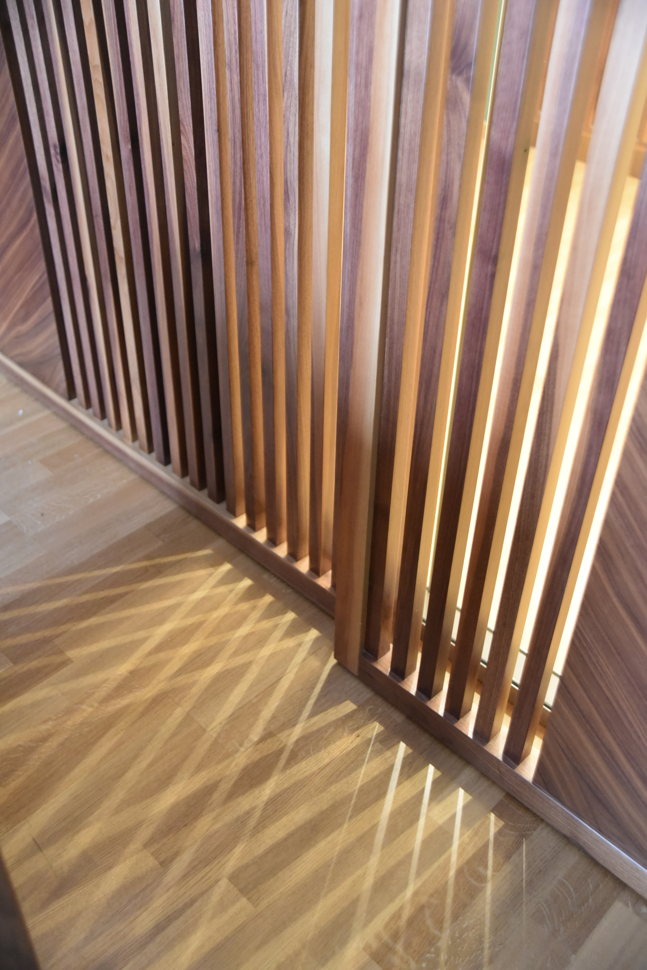 the floor is the same from both sides of the panels therer placed in an office interior diffideres