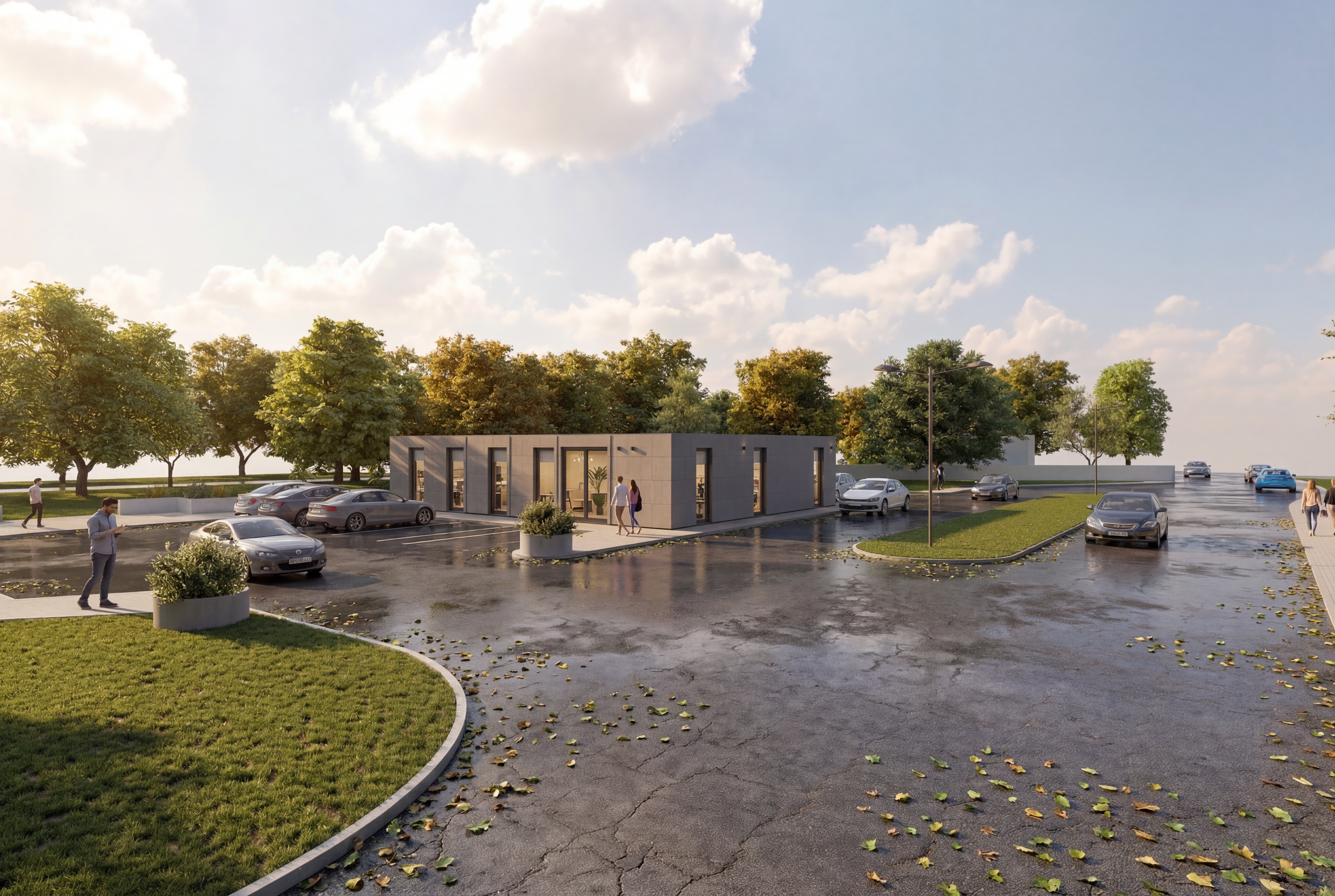 make photorealistic as possible while keeping textures and architectural elements the same as selection add professional landscaping on a lightly wooded neighborhood scene with good lighting located in kenton ohio use the following colors and materials lap siding to be light tan gray in color corner boards to be light tan gray in color shingles are to be certainteed dimensional shingles in color moire black windows to be white in color window trim to be white in color gable vents to be white in color entry door to be stained a medium dark brown sw 3524 chestnut entry door trim to be white in color fascia frieze soffit gutter and downspouts to be dover white in color porch posts to be stained a medium brown sw 3518 hawthorne step to porch to be concrete
