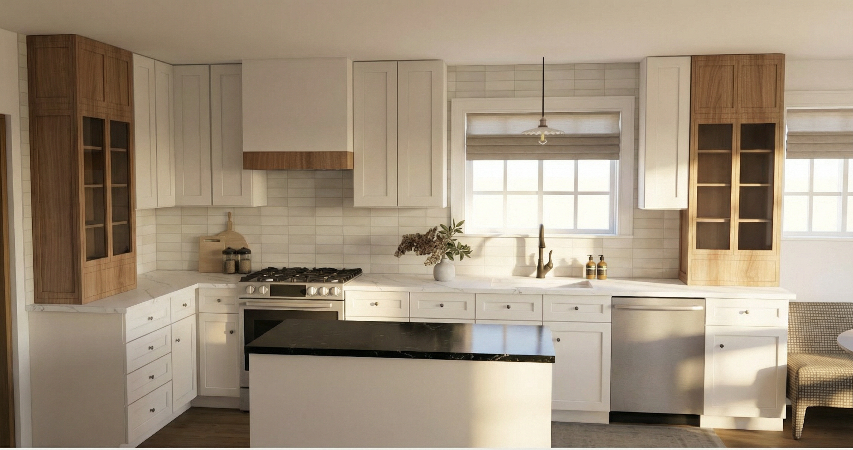 aggiungi un grande divano a forma di u color terra di siena e un tappeto moderno neutro