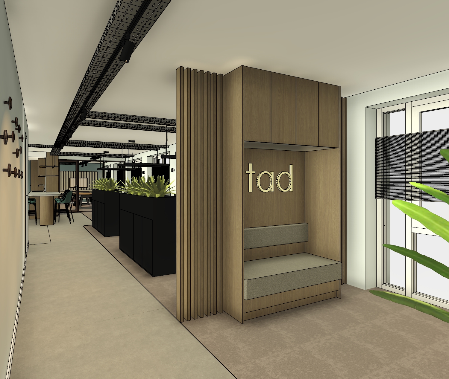 linkervloer grijze gietvloer rechtervloer een laagpolig grijs beige tapijt de wanden heel licht grijs licht blauw
