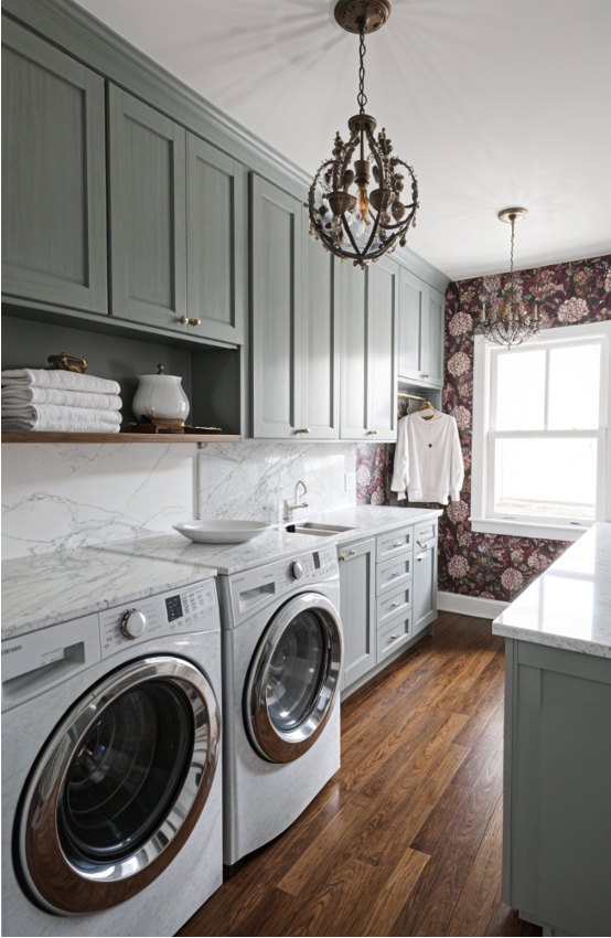 keep all elements of this layout including textures and colors match the ceiling color to the green of the cabinets no other changes maintain a crisp photo realistic detail in the image